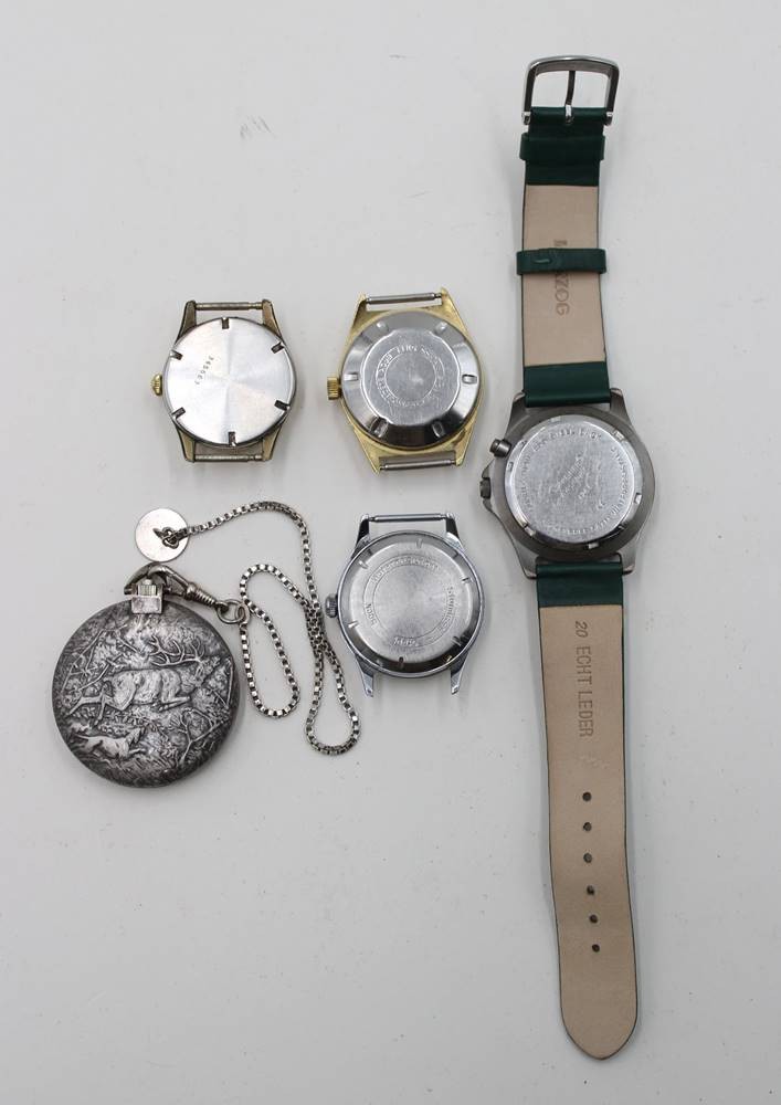 Konvolut von 5 div. Vintage-Uhren, getragene Erhaltungen, 3x Werke laufen, 1x defekt und 1x ungeprüft [1]