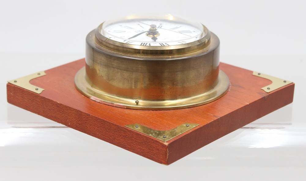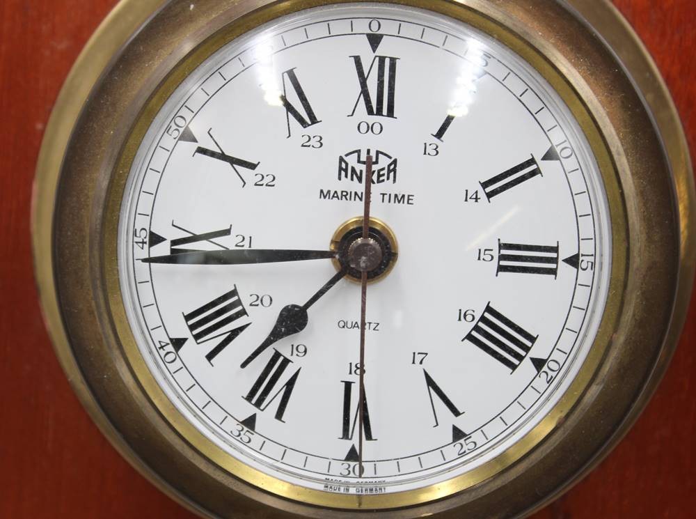 maritime Schiffsuhr, Anker im Messinggehäuse mit Holzrahmen, Batteriewerk läuft, ca. 18,5 x 18,5cm, Uhr D-13,5cm [1]