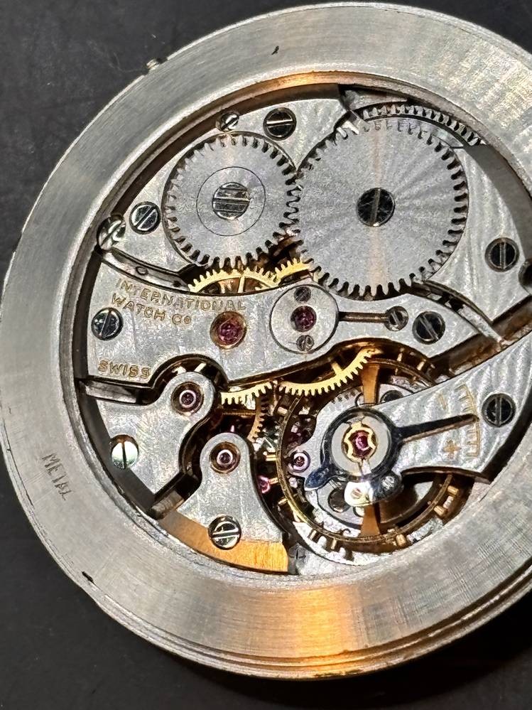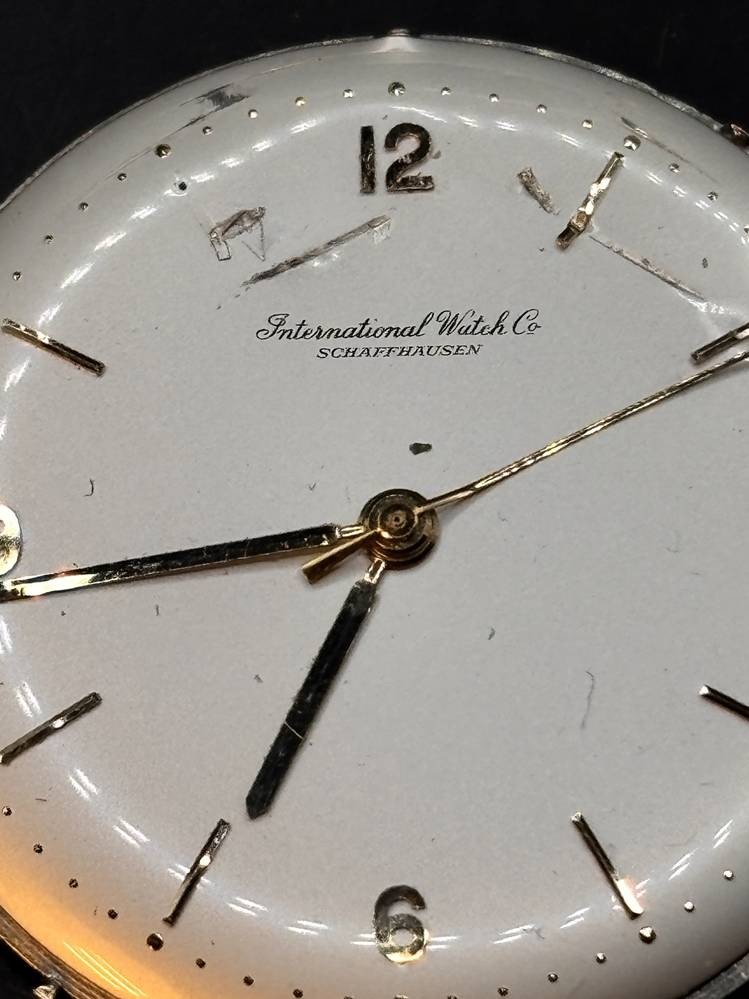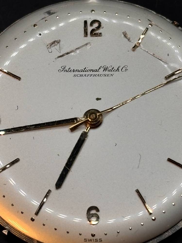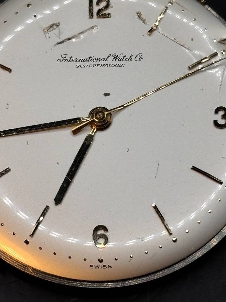 mech. HAU Werk "IWC" Schaffhausen, Werk läuft an, Krone fehlt, Ziffernblatt beschädigt [1]