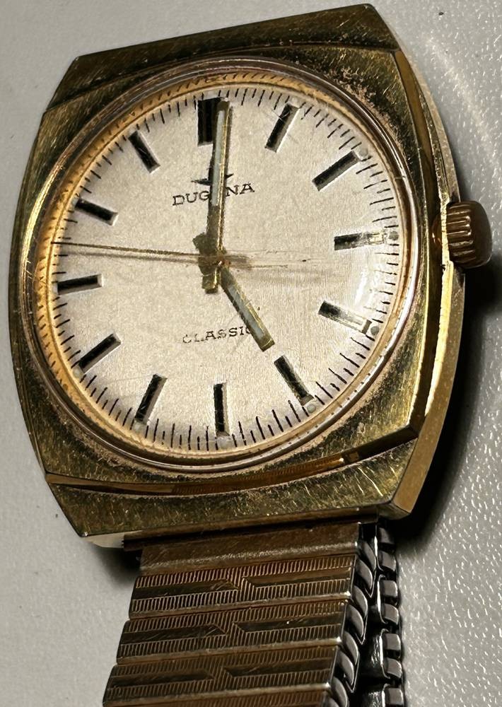 mechan Armbanduhr "Dugena" Classic, Zugband, Werk läuft, ca. D-3,5cm, Tragespuren [1]