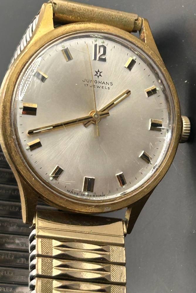 mechan. Armbanduhr "Junghans" 17 Jewels, Double Zugband, Werk läuft, gut erhalten, D-3,5cm [1]