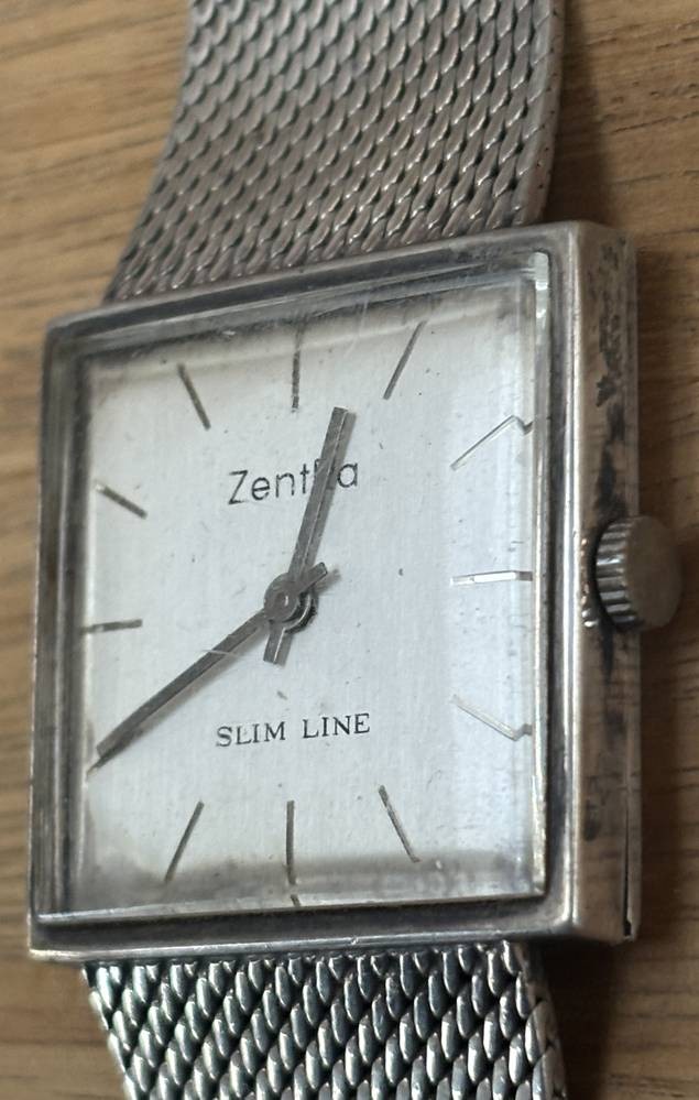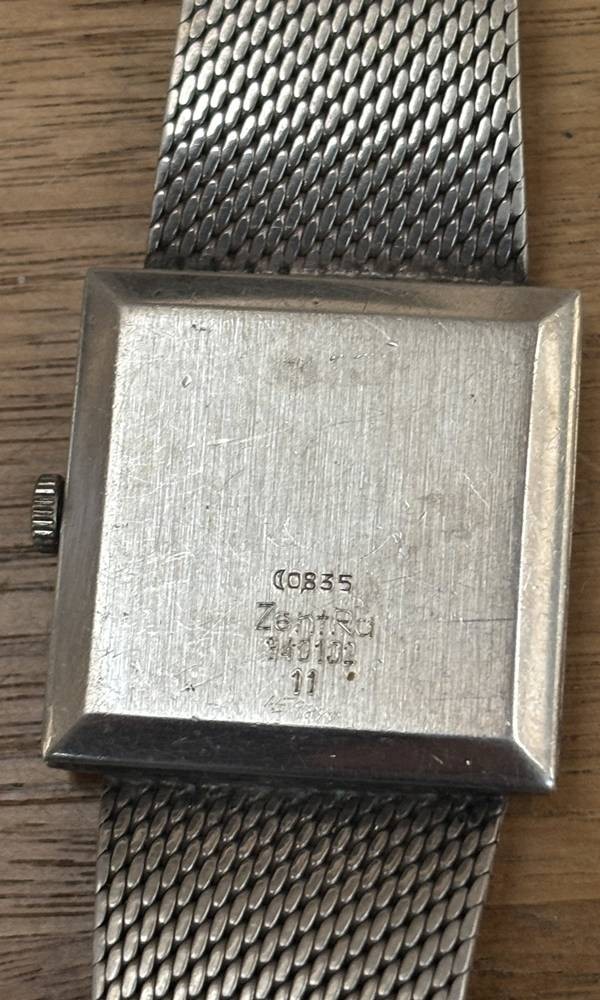 mechan. Armbanduhr "ZentRa" Slim Line, Silber-835-, Armband ebenso, 2,8x2,8 cm, 59,3 gr., Werk steht [1]