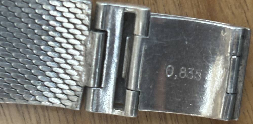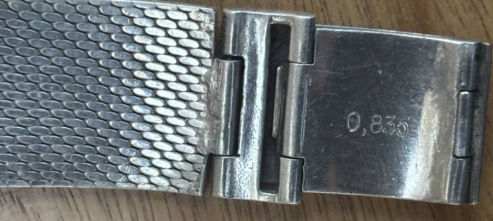 mechan. Armbanduhr "ZentRa" Slim Line, Silber-835-, Armband ebenso, 2,8x2,8 cm, 59,3 gr., Werk steht