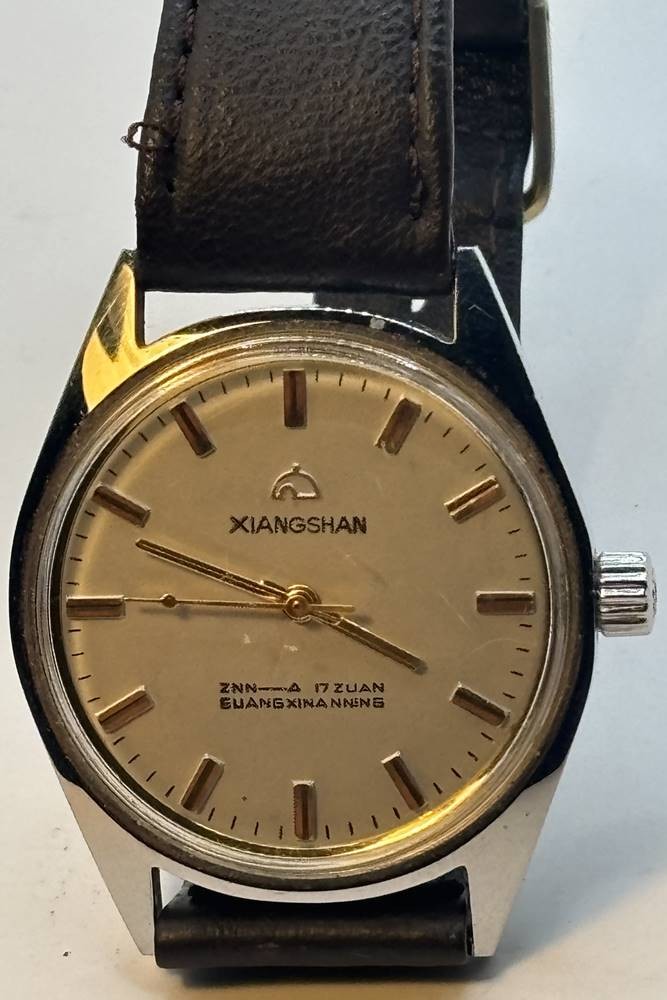 mechan. chines. HAU "Xiangshan", 17 Rubis, Werk läuft, 70/80-er Jahre, gut erhalten, Lederband [1]