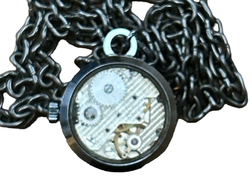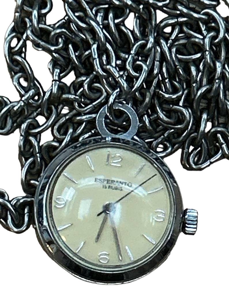 mechan. Damen-Kugel-Umhängeuhr "Esperanza" 15 Rubis, Werk läuft, an langer versilb. Kette, L-ca. 84 cm [1]