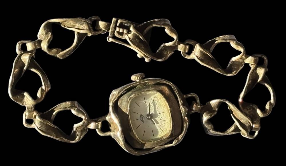 mechan. DAU "AKP" in Silbergehäuse-835-, Armband ebenso Silber-835- Werk läuft, 29,7 gr [1]