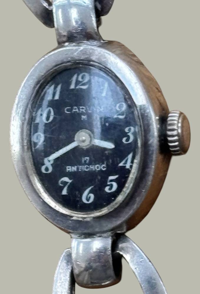 mechan. DAU "Carvin" Silber-835- Gehäuse und Band, zus. 27,4 gr. Werk steht wohl