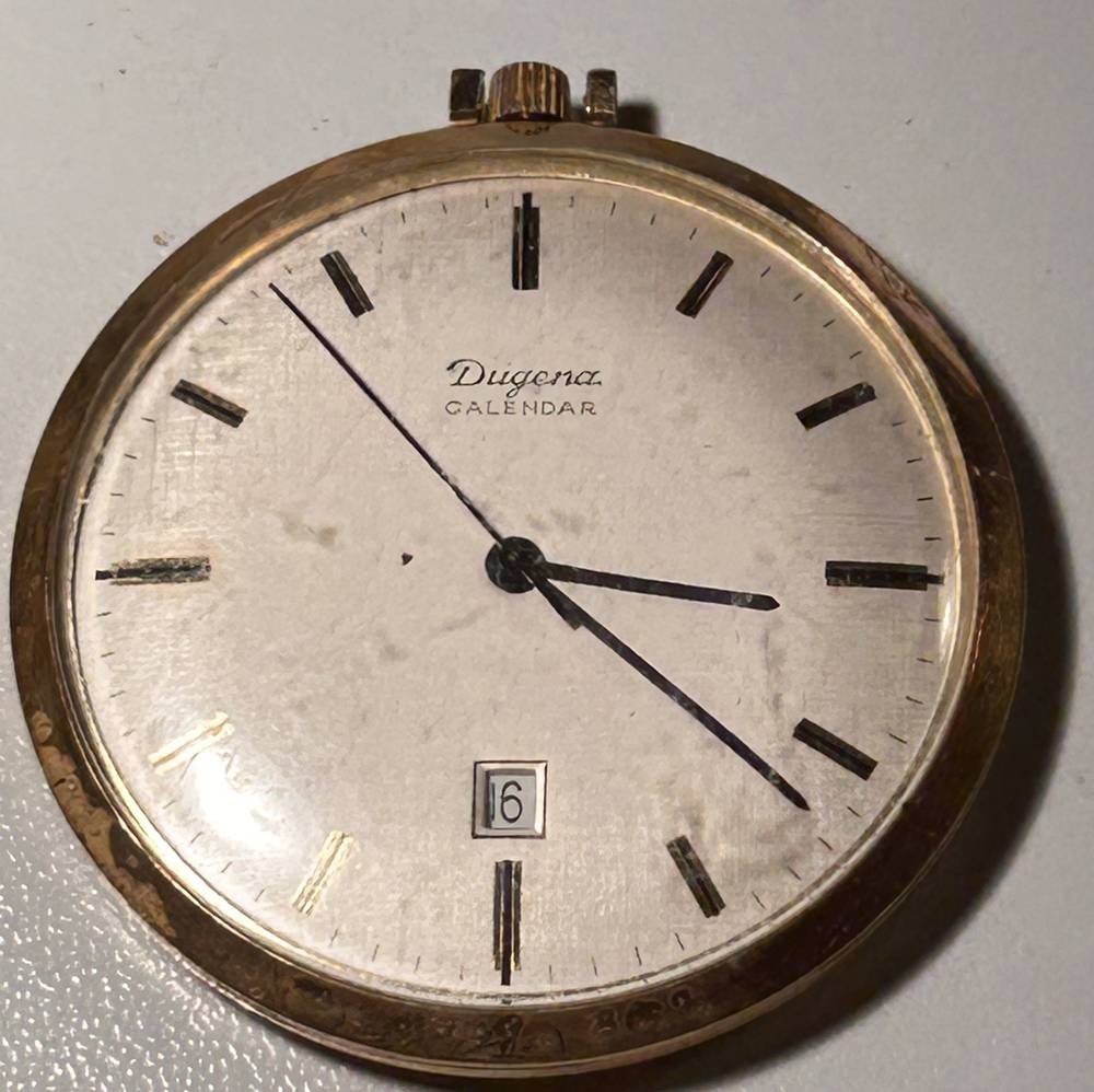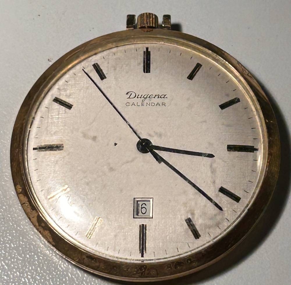 mechan. Frackuhr "Dugena Calender" Werk läuft, Double-Gehäuse, Bügel fehlt, D-4 cm [1]