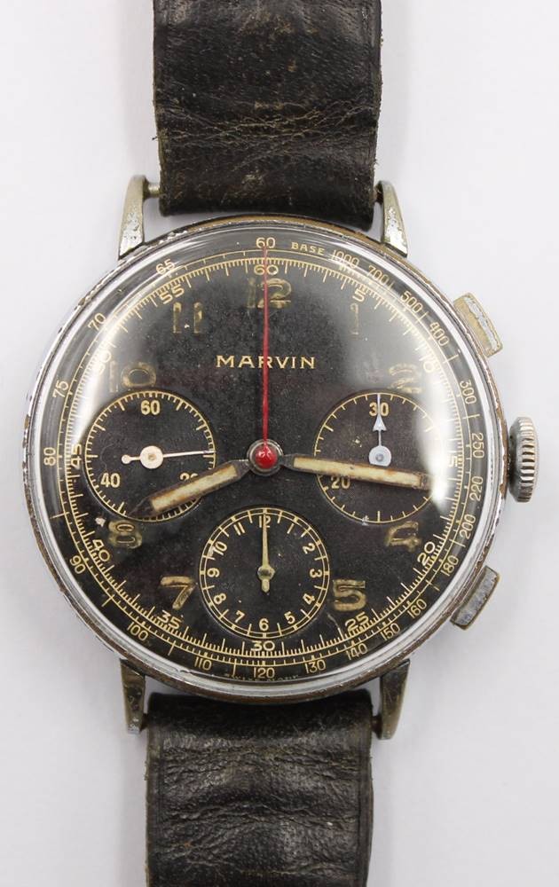 mechan HAU "Marvin" Chronograph, Lederband, Werk läuft, Tragespuren [1]