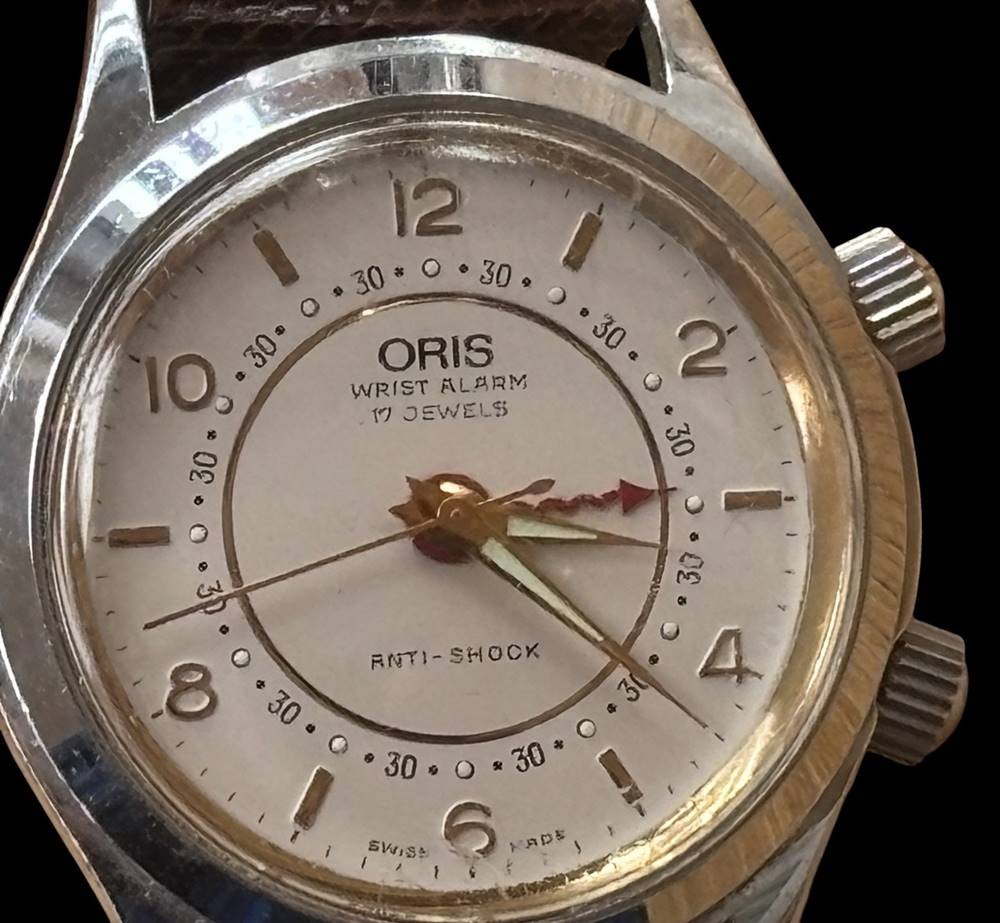 mechan. HAU "Oris", Lederband, Handaufzug, Werk läuft, guter Zustand, ca. D-3,5cm [1]