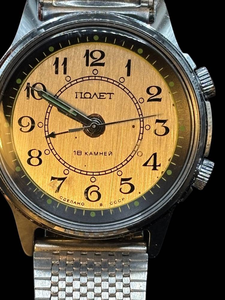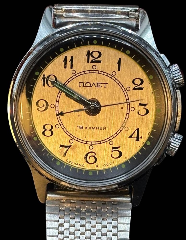 mechan HAU "Poljot" mit Wecker, Werk läuft, orig. Band, guter Zustand [1]