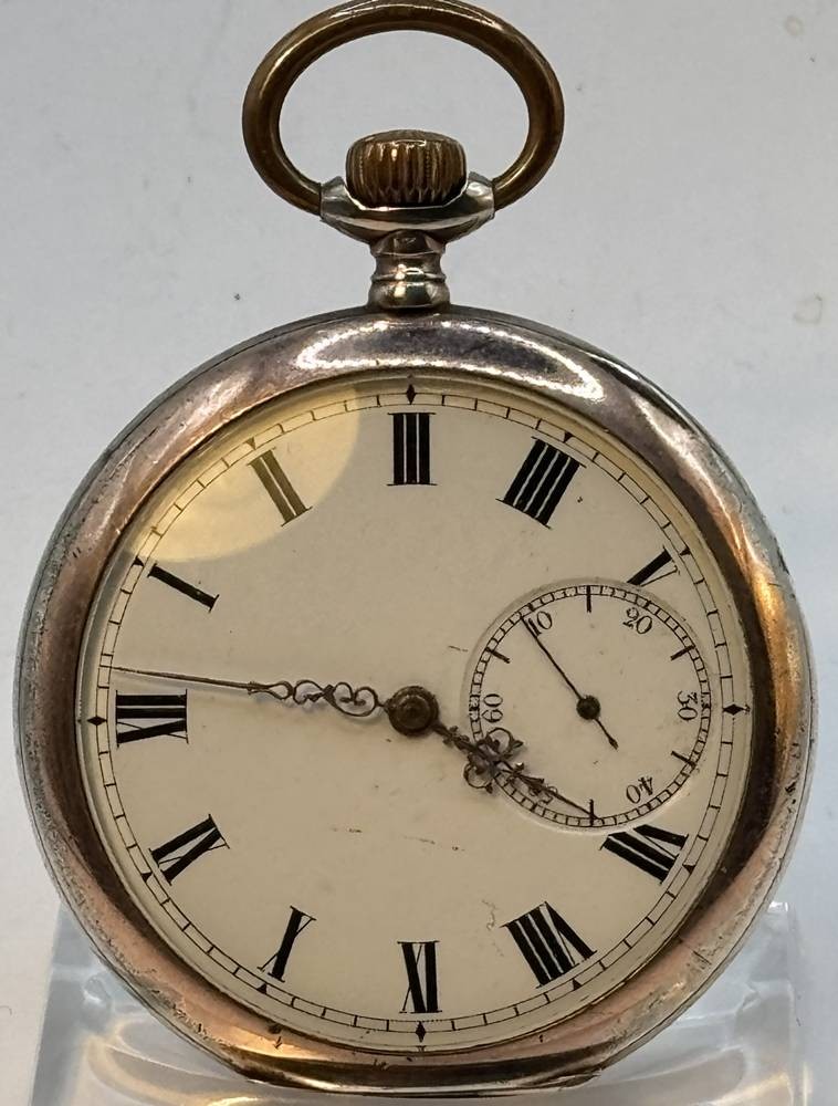 mechan. HTU in Silbergehäuse-800-,2 Deckel-Silber, Werk läuft,15 Rubis, D-5 cm [1]