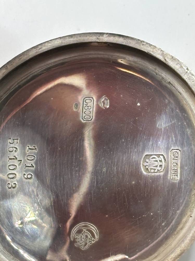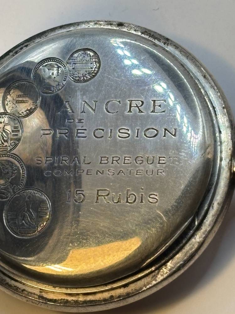 mechan. HTU in Silbergehäuse-800-,2 Deckel-Silber, Werk läuft,15 Rubis, D-5 cm