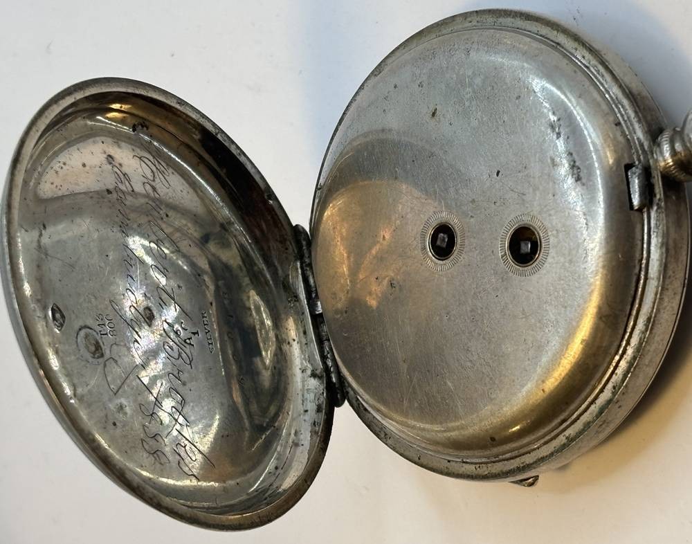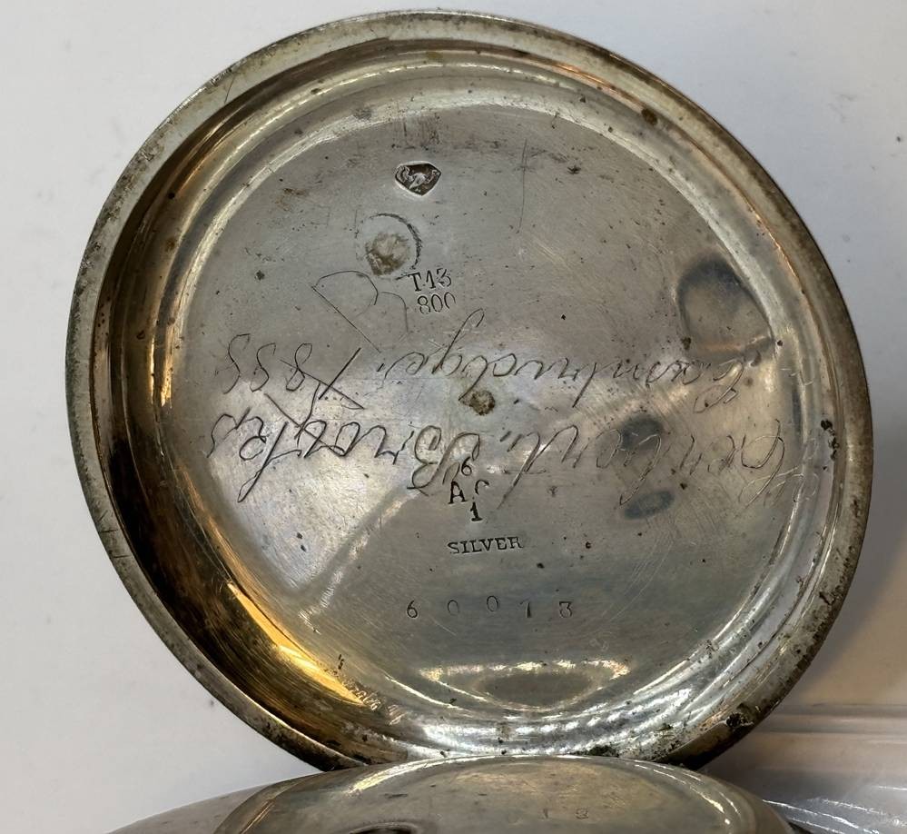 mechan. HTU in Silbergehäuse-800-, Schlüssel-Werk steht, D-5 cm, Gravur datiert 1885, [1]