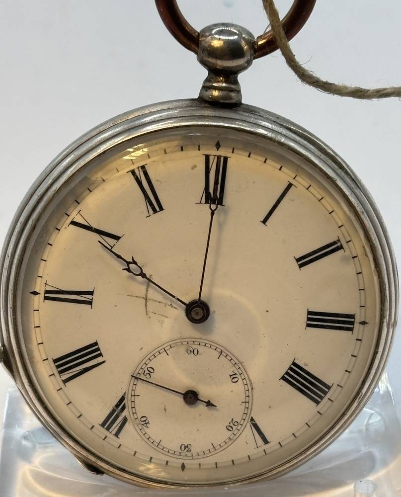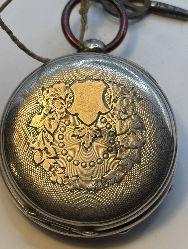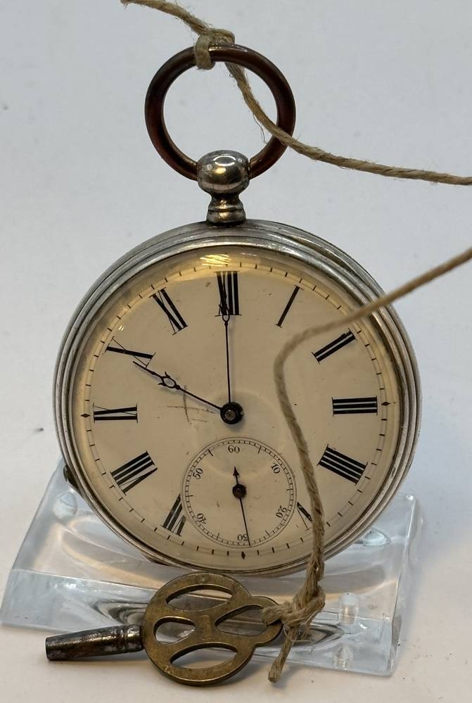 mechan. HTU in Silbergehäuse-800-, Schlüsselwerk läuft, 1 Schlüssel anbei, Zifferblatt mit Kratzer etc., D-4,5 cm [1]
