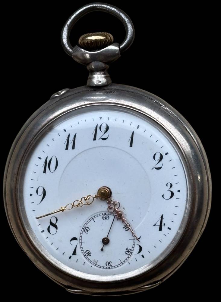mechan. HTU in Silbergehäuse-800- , vergoldete Zeiger, Werk läuft [1]
