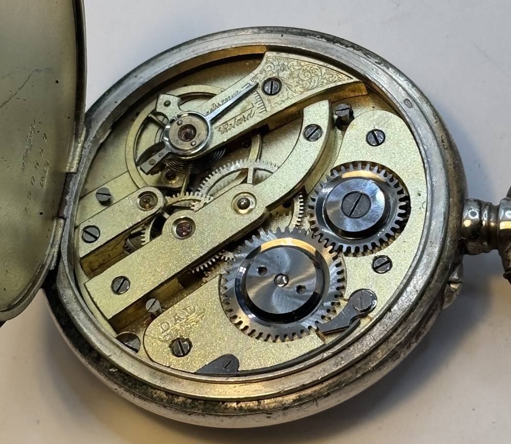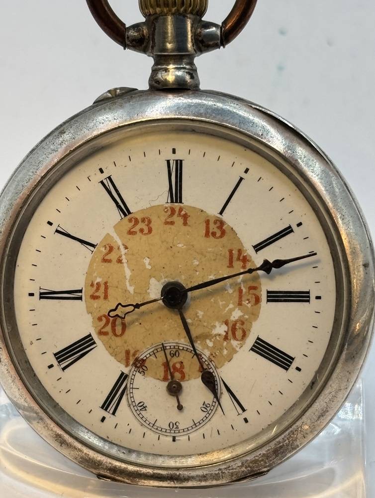 mechan. HTU in Silbergehäuse-800-, Werk läuft, D-5 cm, Ziffernblatt etwas berieben