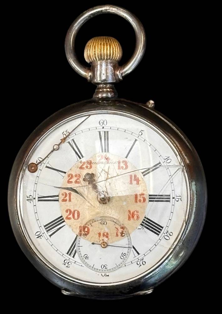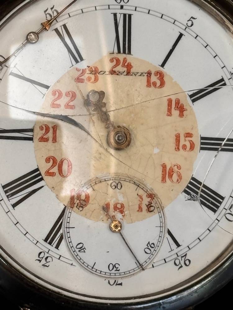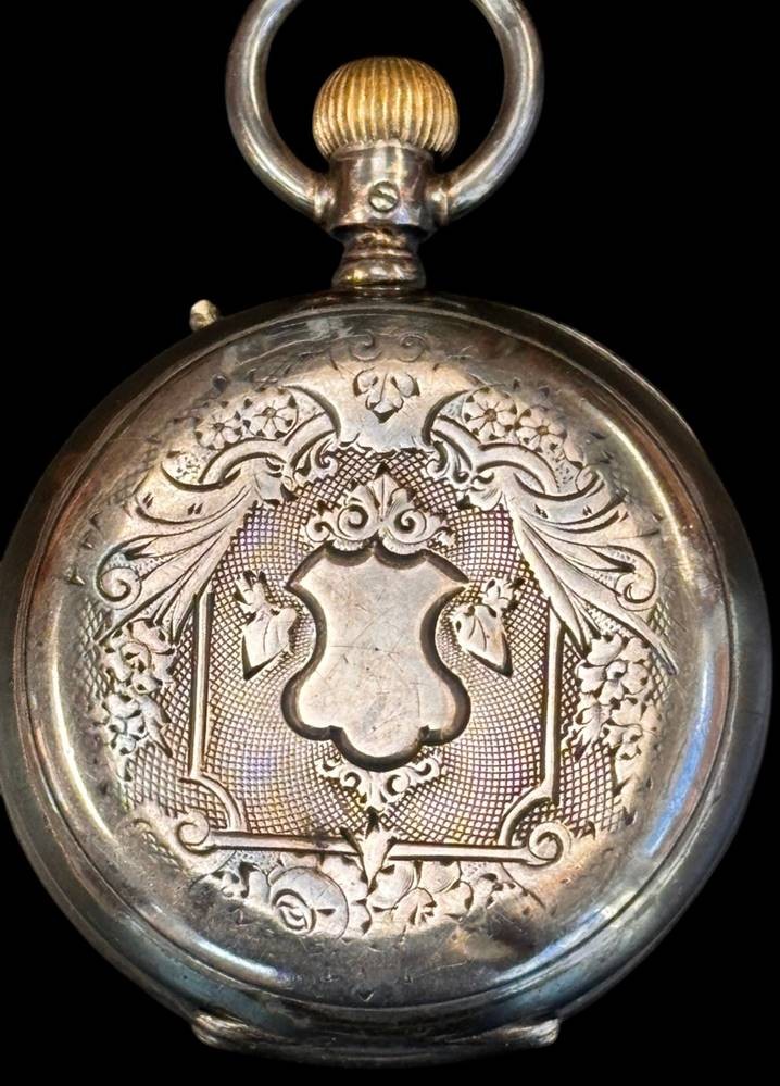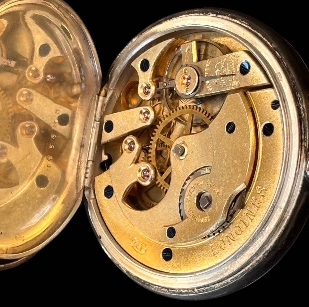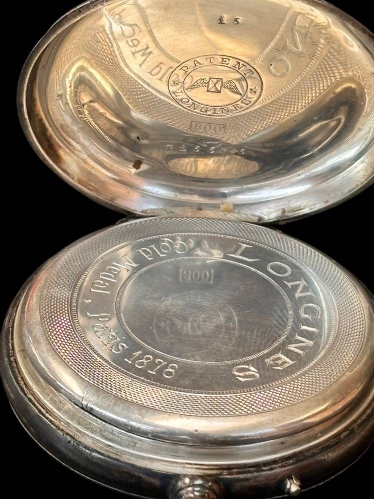 mechan. HTU "Longines" Swiss made, Silbergehäuse-800-, Werk läuft, Glas beschädigt, Zeiger lose, 2 Deckel Silber-800-, 84 gr [1]