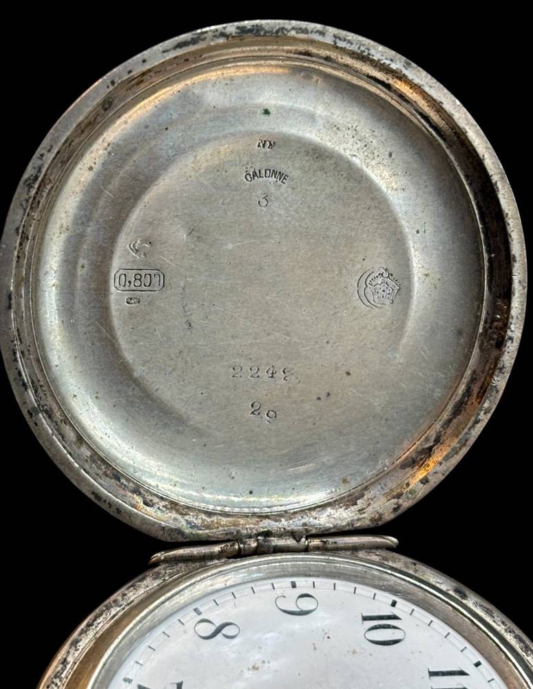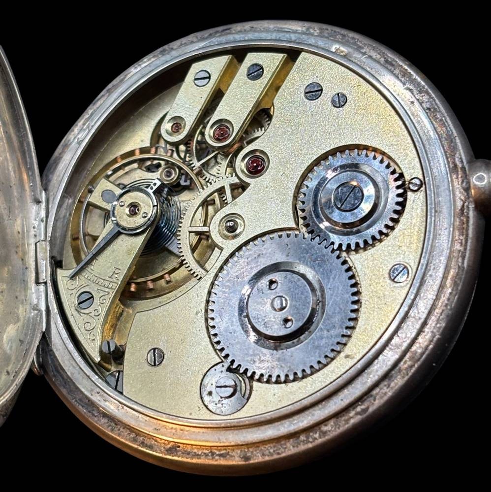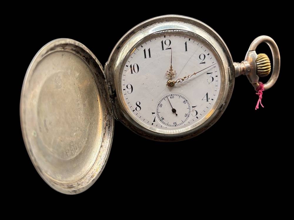 mechan. HTU, Silber-800-, 2 Deckel Silber, Werk läuft, 15 Rubis, gut ehalten [1]