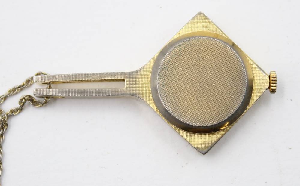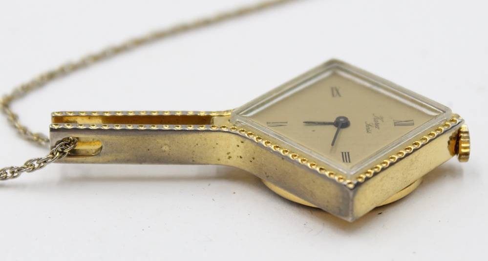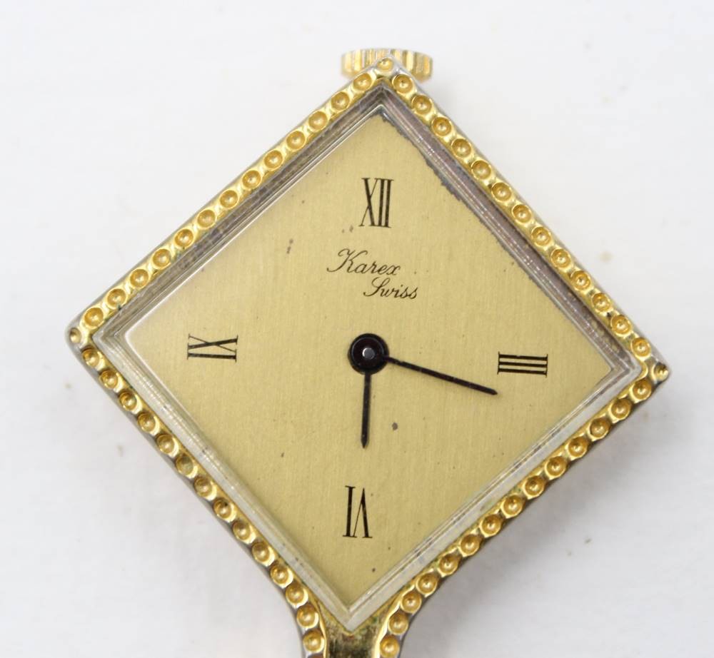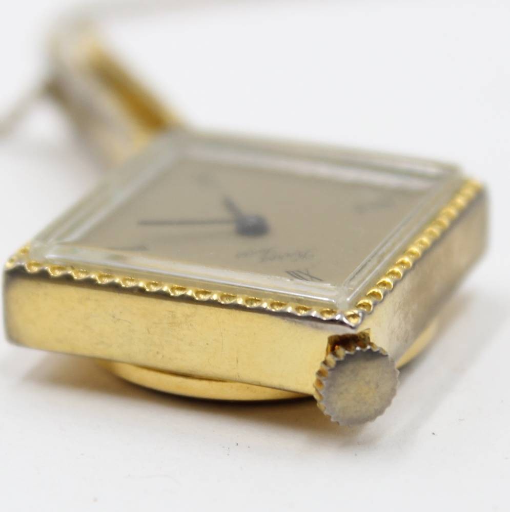 mechanische quadratische Damen-Umhängeuhr "Karex" Swiss, Double-Kette, L- ca. 70 cm, Werk läuft [1]