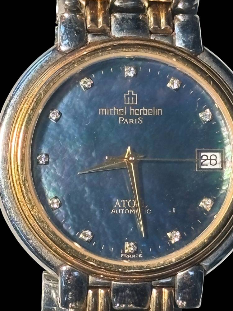 Michel Herbelin Automatik Damen Herren Stahl Gold Atoll Automatic perlmutblau, Werk läuft, D-ca. 3,5 cm