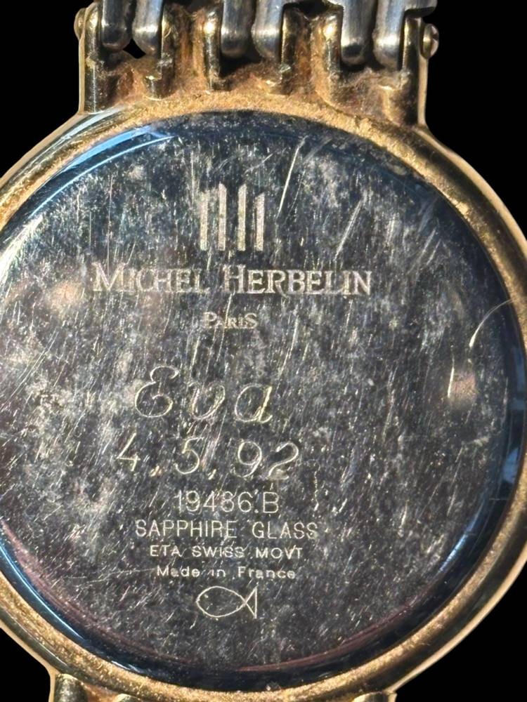Michel Herbelin Damenarmbanduhr Quarzwerk nicht geprüft, Saphirglas, D-3 cm, verso "Eva 1992" [1]