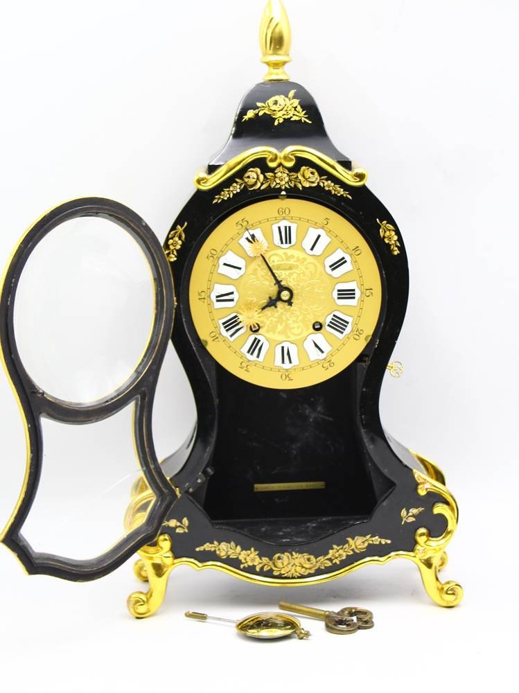 Neuenburger Pendule mit Konsole "Zenith" Le Locle, Swiss, Werk läuft, Glasscheibe mit Riss