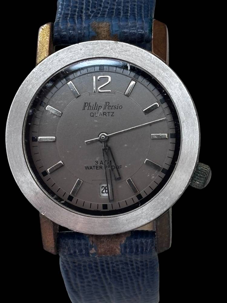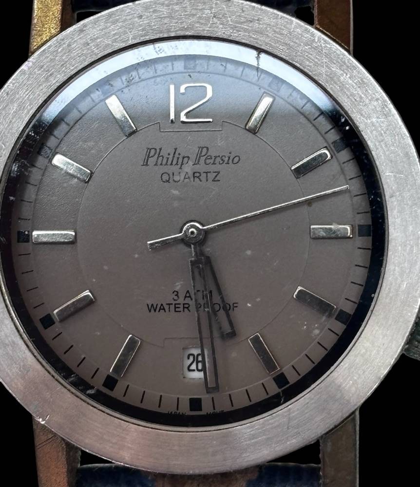 PHILIP PERSIO Analoguhr Damen Uhr silberfarben, D-3,5 cm, Uhr sehr guter Zustand, Band mit Gebrauchsspuren [1]