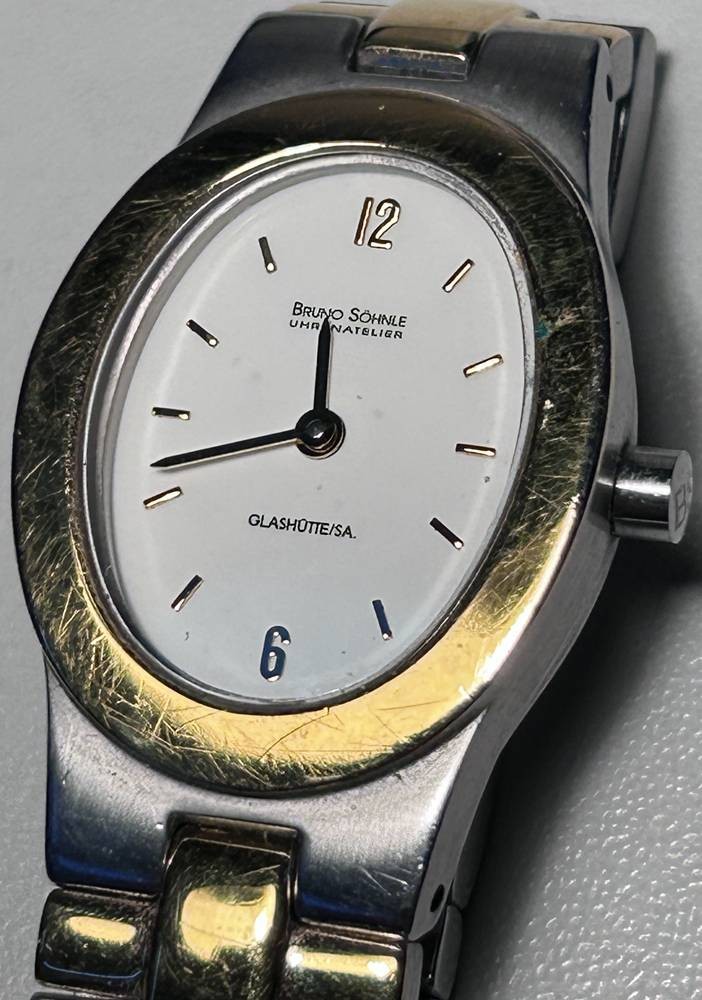 Quartz Damen Armbanduhr Bruno Söhnle Uhrenatelier, Glashütte/SA, Stahl/Gold, Ref. Nr. 1259, guter Zustand, ca. 3 x 2,5cm [1]