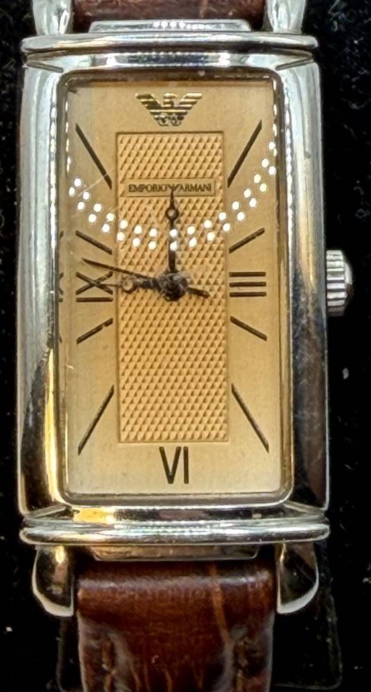Quartz DAU "Emporio Armani", braunes Lederband, Werk nicht geprüft, aus Sammlerbox [1]