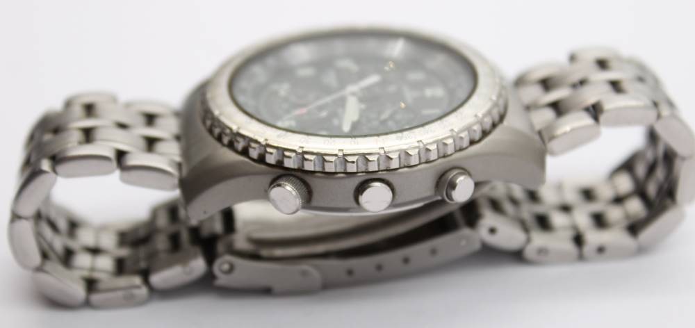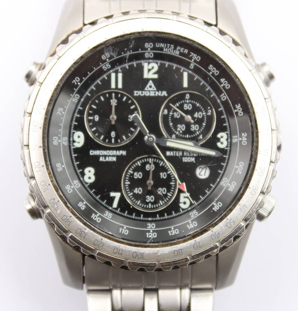 Quartz HAU "Dugena" Chronograph Alarm, orig. Stahlband D-4 cm, Werk nicht geprüft