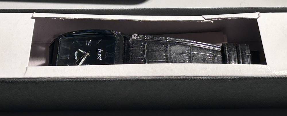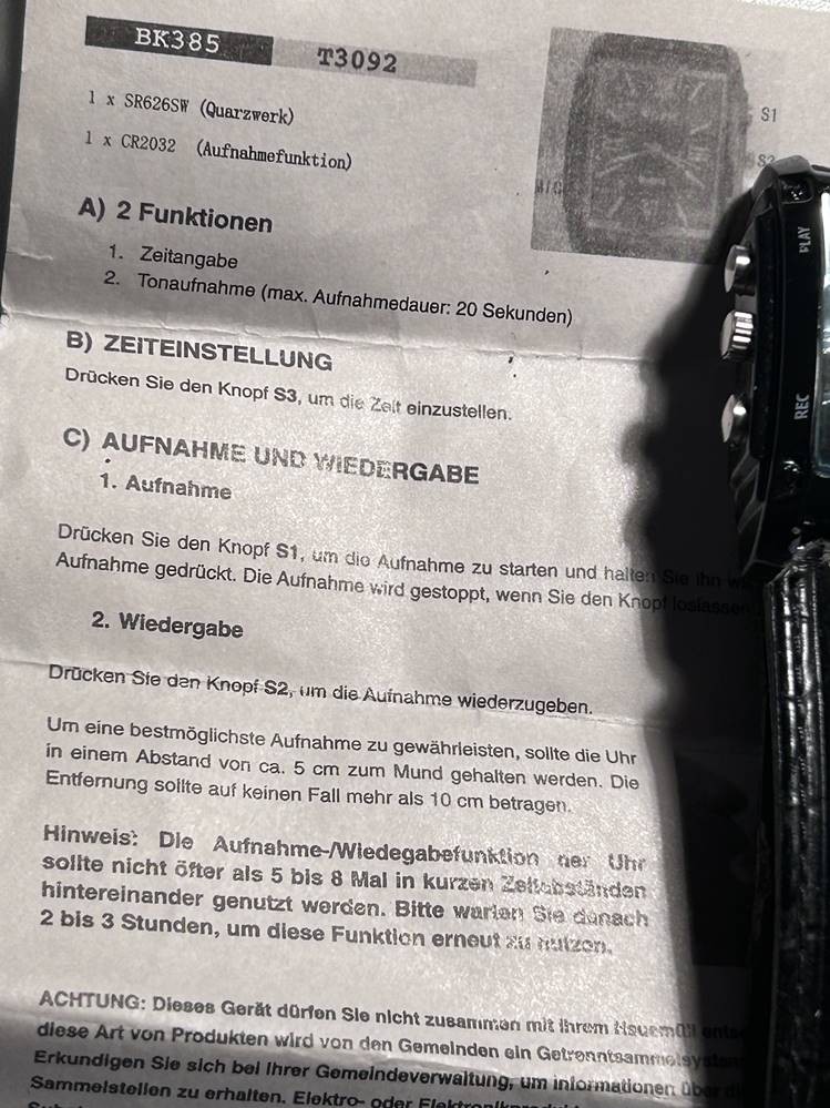 Quartz HAU "E`clipse" mit Aufnahme-Abspiel Funktion?, neuwertig in Karton mit Beschreibung, Lederband [1]
