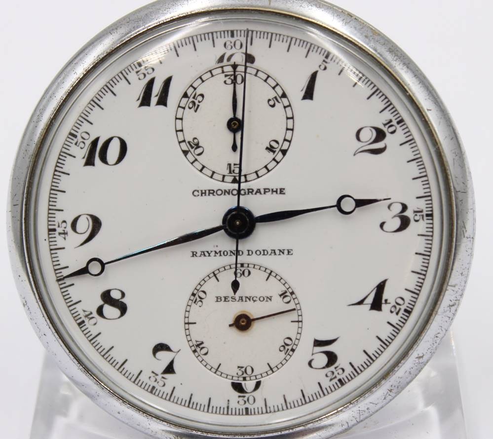RAYMOND DODANE Besancon Militär-Chronograph der französischen Armee, Kronenaufzug, Werk läuft, verso Gravur "Ministere de la Guerre", D-5cm [1]