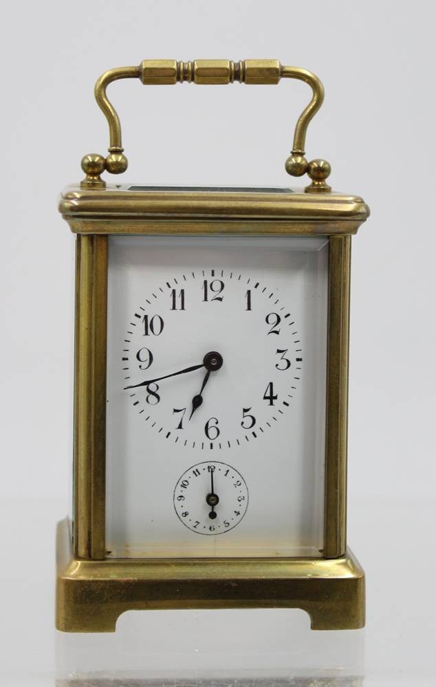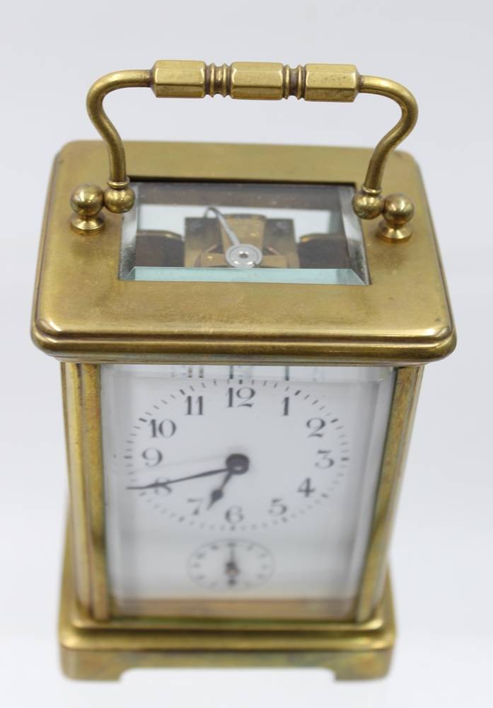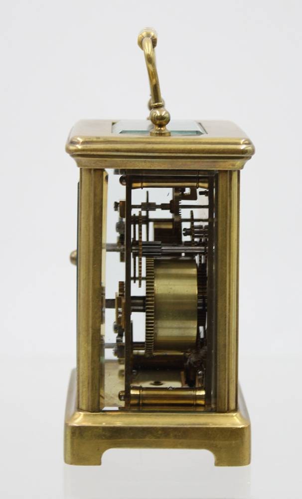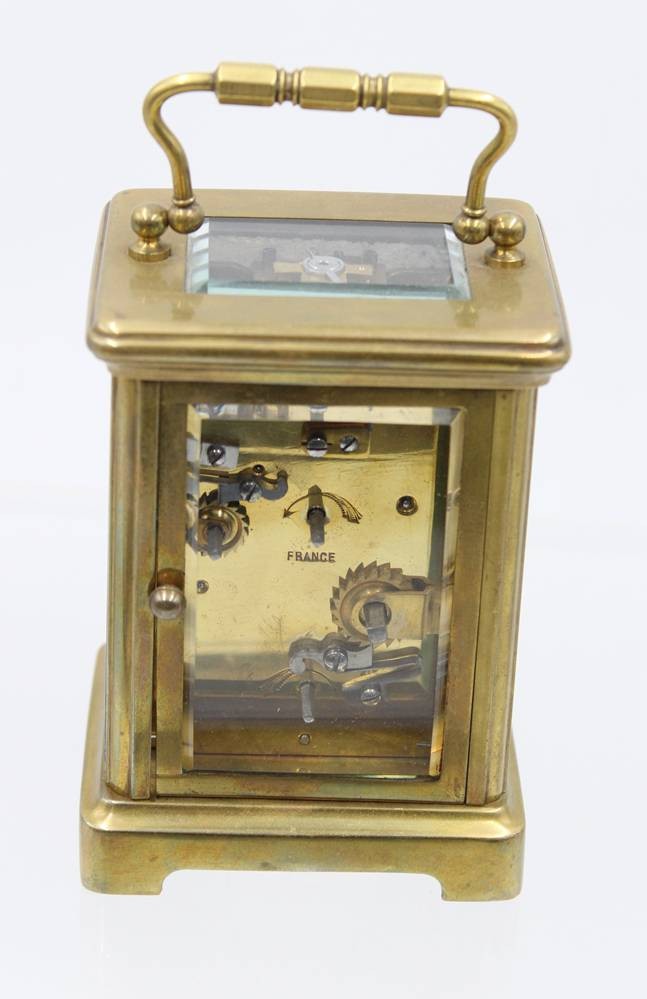 Reiseuhr, Frankreich, älter, allseitig verglast, Schlüsselwerk läuft, ca. H-14,5cm [1]