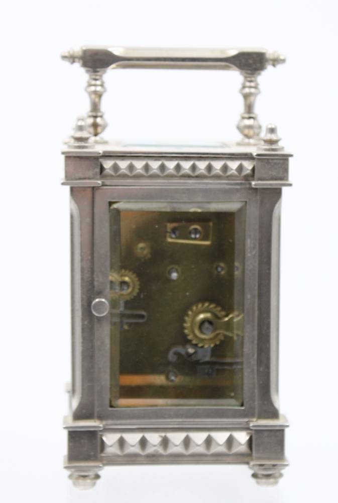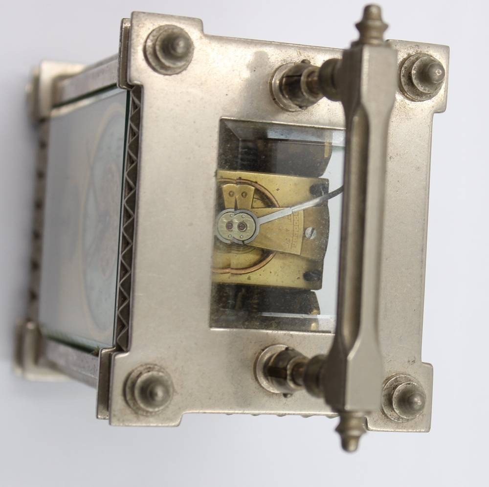 Reiseuhr um 1900, Werk läuft an, allseitig verglast, ca. H-15cm [1]