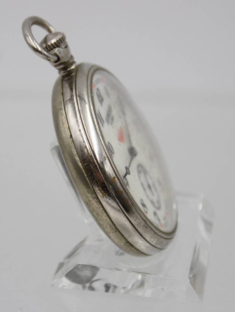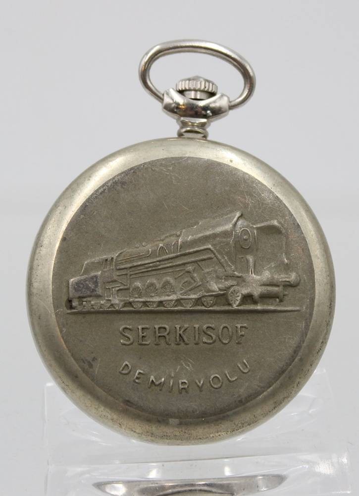 russische Herren-Taschenuhr, Serkisof, Kronenaufzug, Werk läuft, rückendekel mit Einesbahnrelief, ca. D-5cm