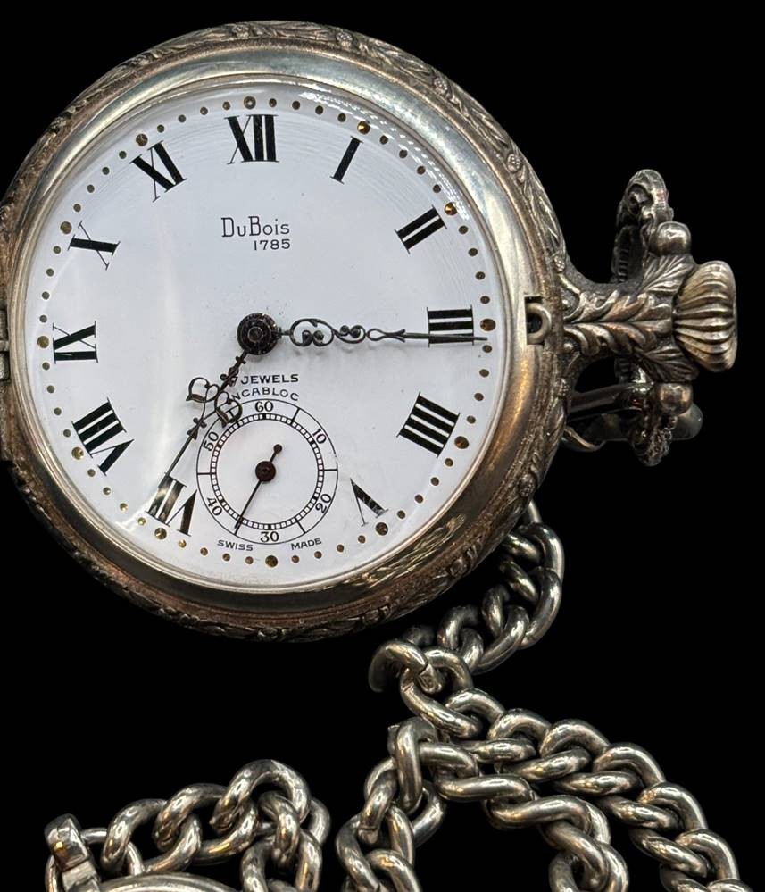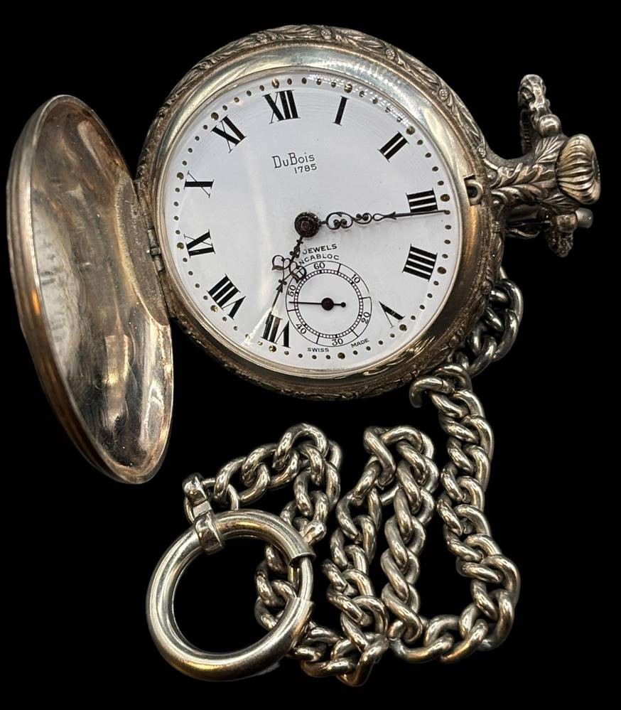 Savonette "Du Bois" Swiss, Werk läuft, Uhrenkette, Sprungdeckel mit Diana bei der Jagd