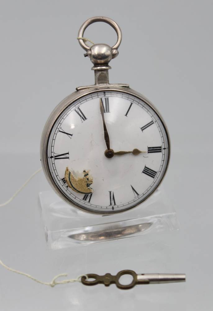 schöne antike Spindeluhr, Silbergehäuse, Werk gemarkt "Whitehall Nottingham," Werk läuft, ca. D-4,8cm