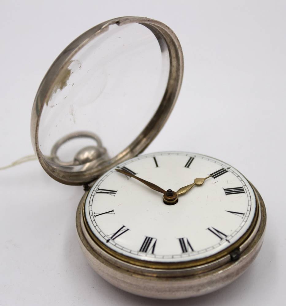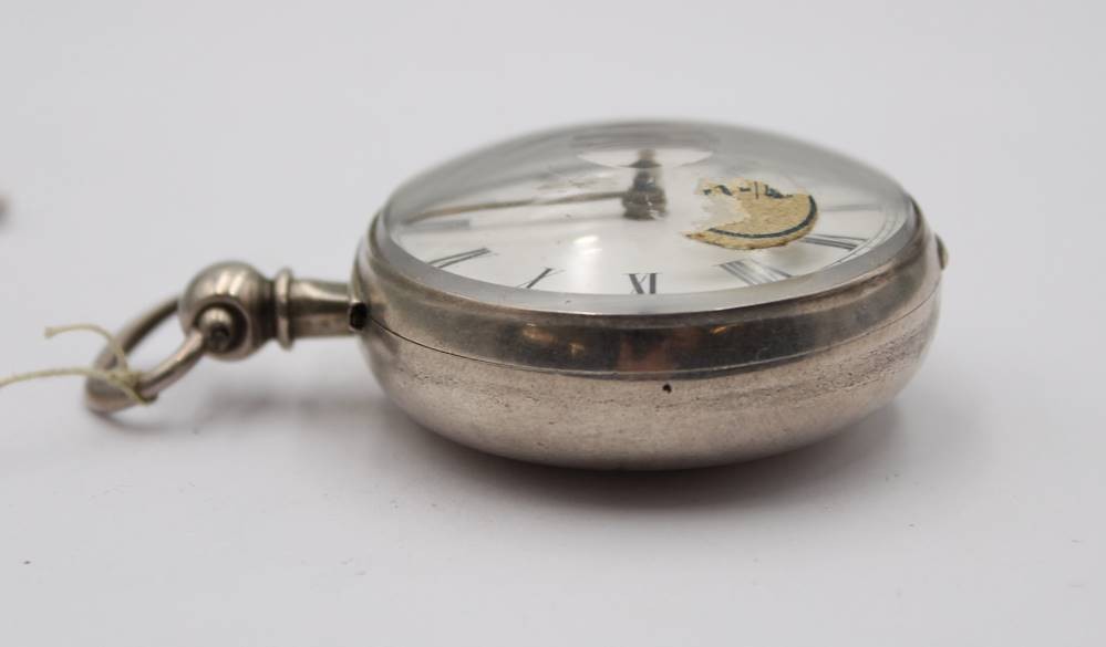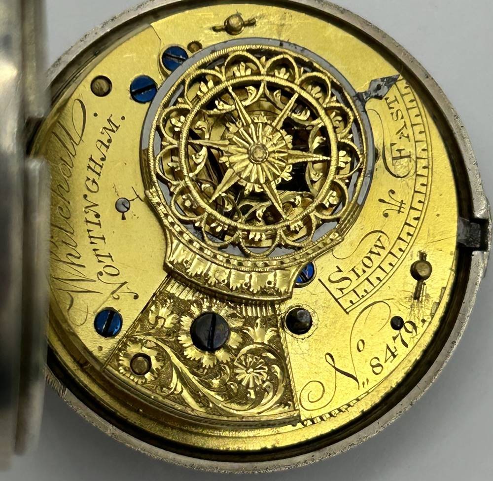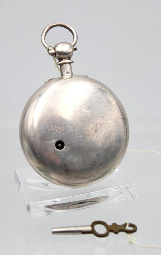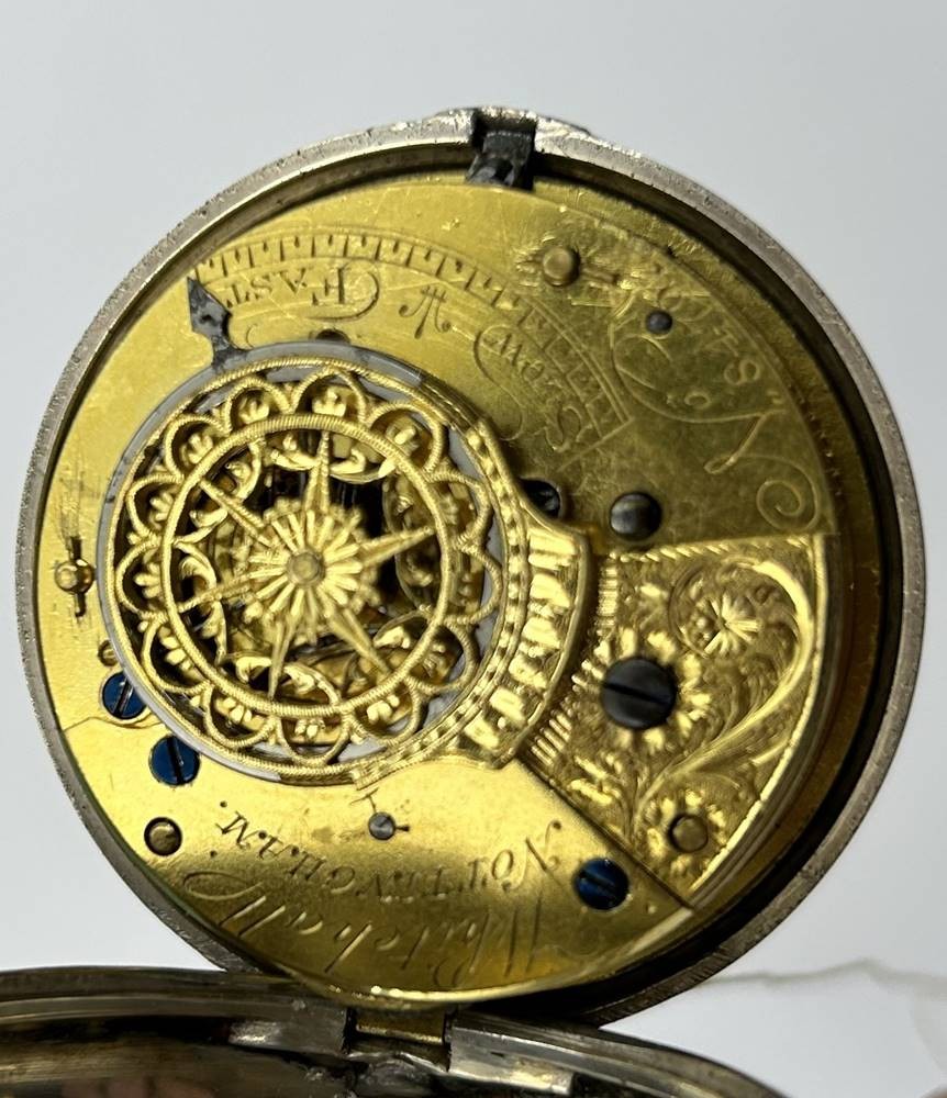 schöne antike Spindeluhr, Silbergehäuse, Werk gemarkt "Whitehall Nottingham," Werk läuft, ca. D-4,8cm [1]
