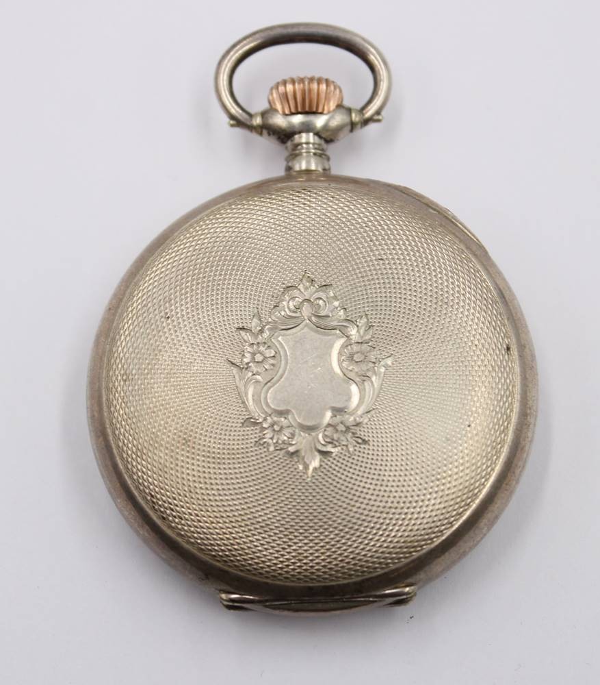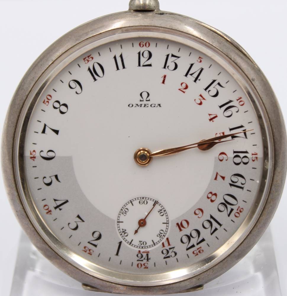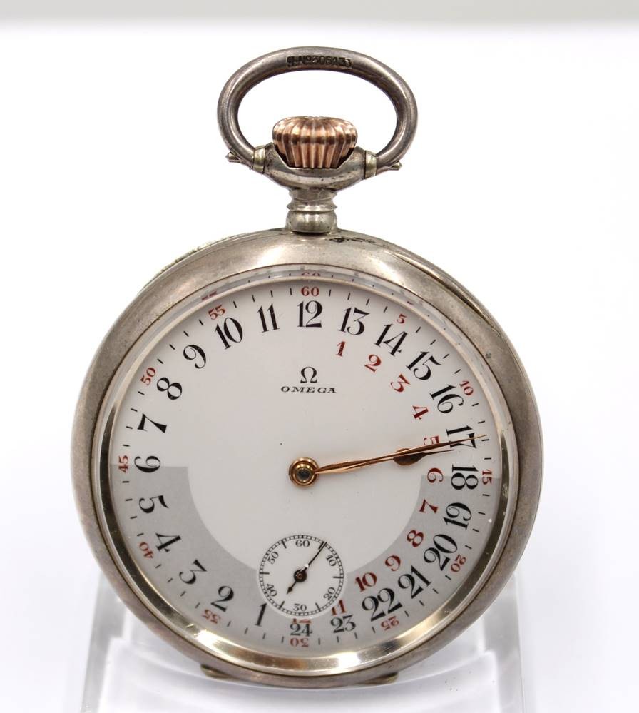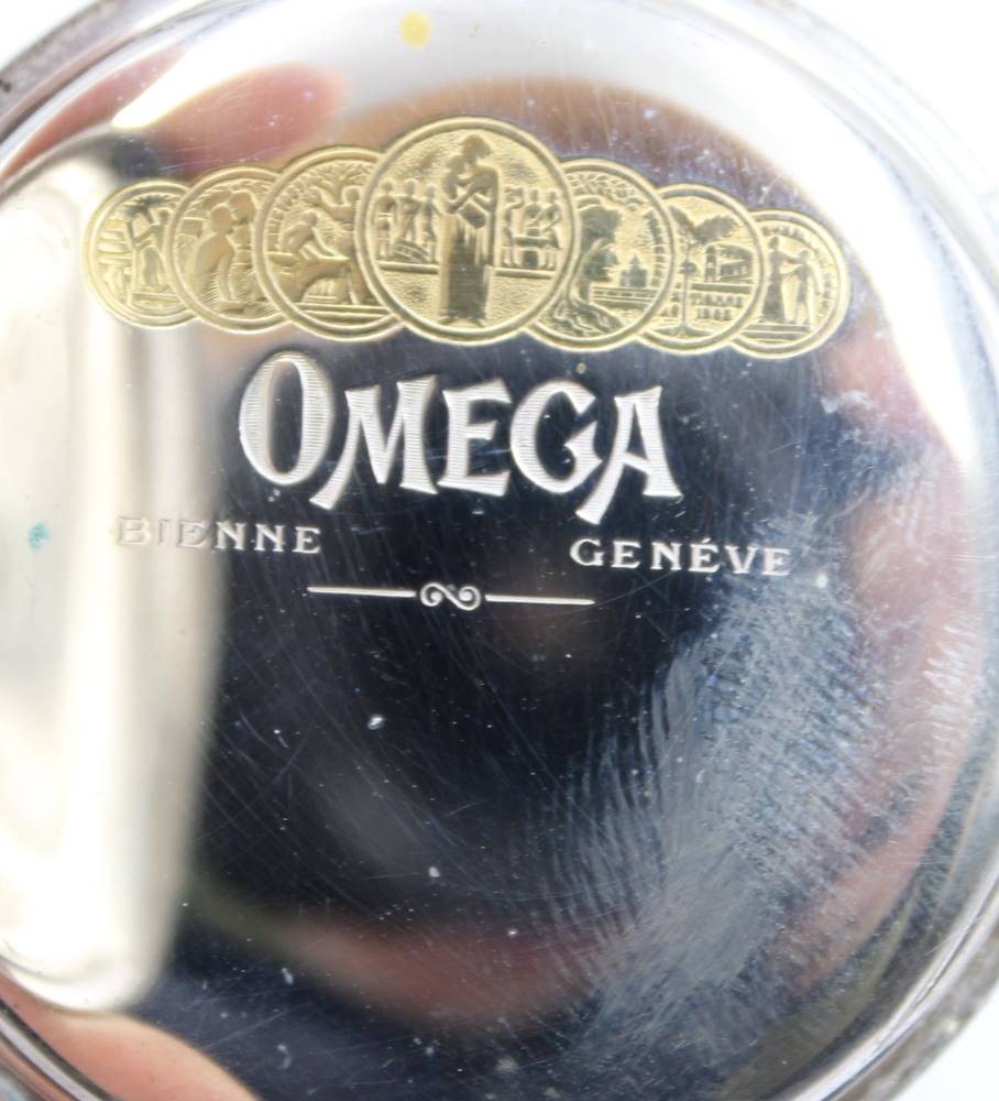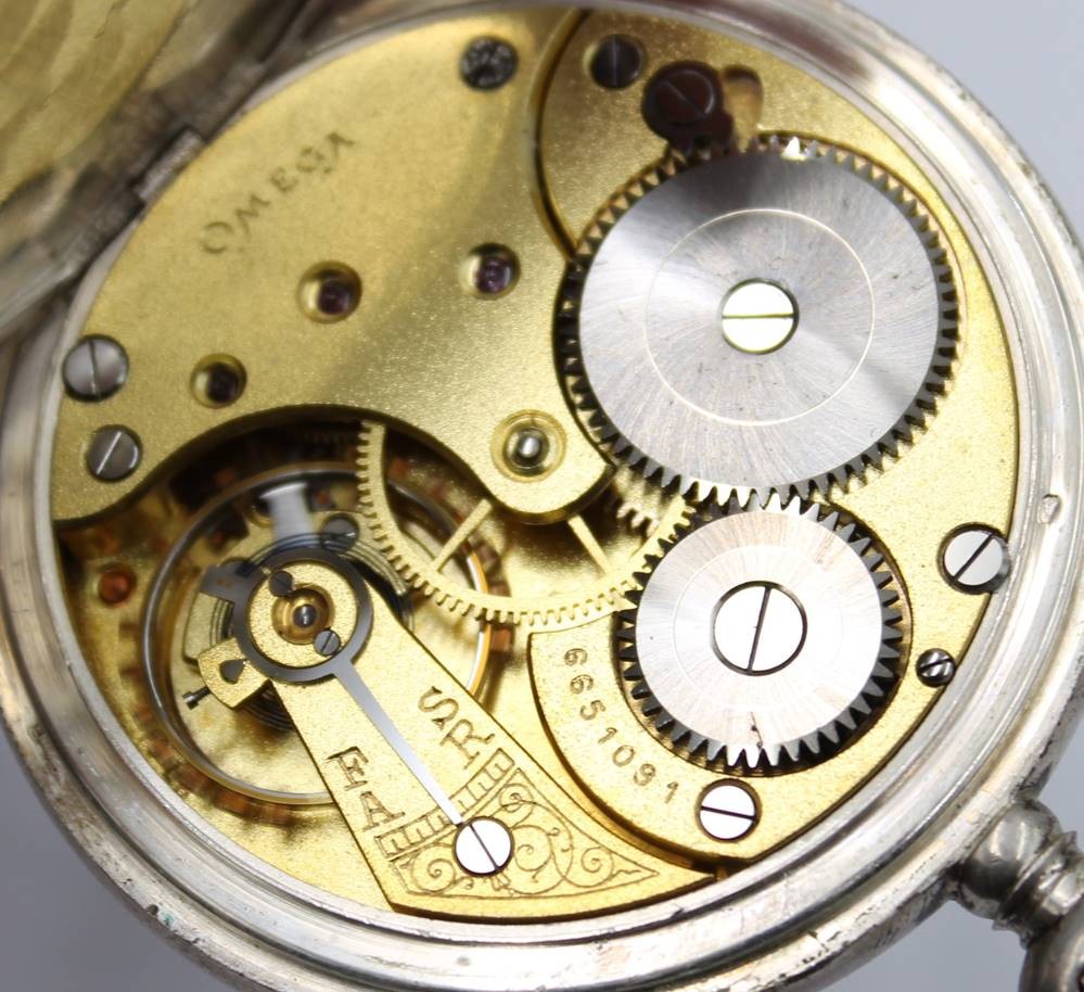 schöne Taschenuhr, OMEGA, wohl um 1920, 800er Silbergehäuse, Kronenaufzug, Werk läuft, guter Zustand, D-4,5cm [1]