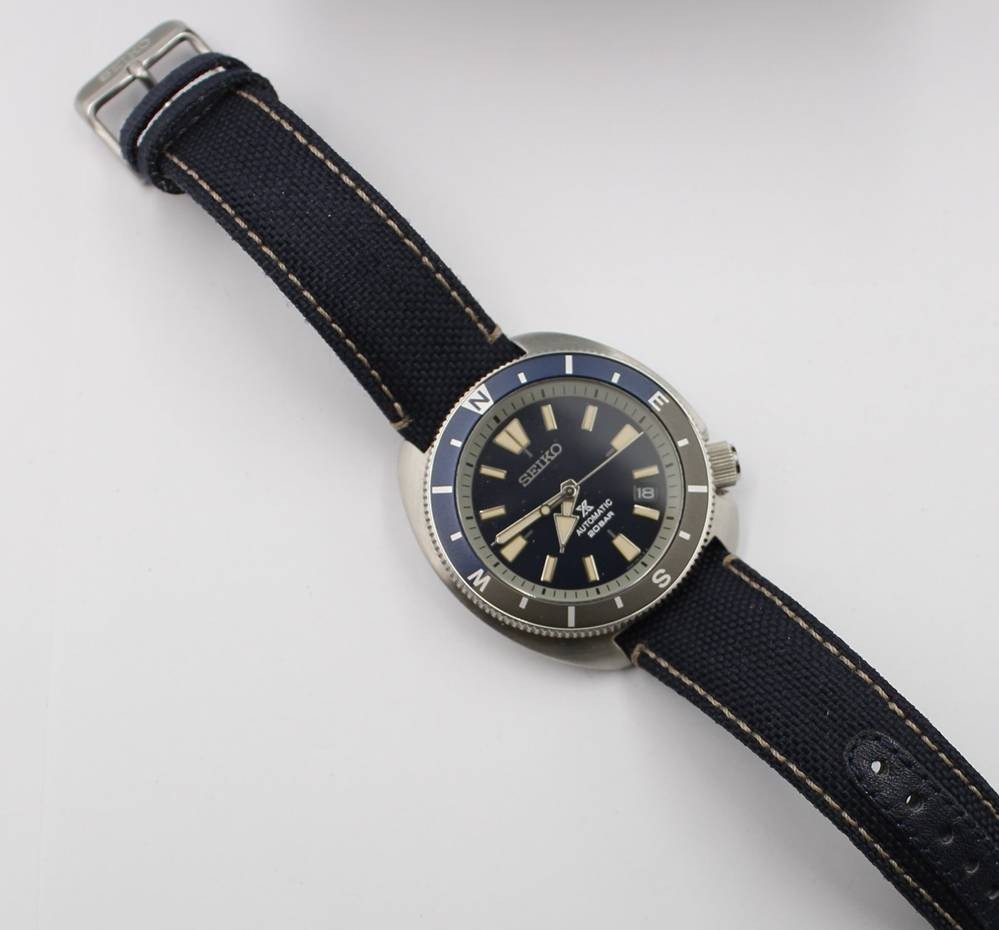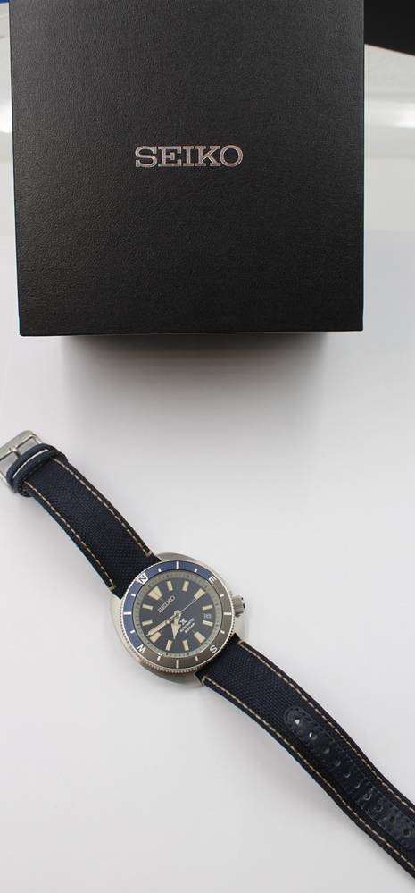Seiko Prospex Land Tortoise Automatic Diver's 200M, neu in OVP, blaues Ziffernblatt, Lederband, mit Beschreibung etc., ungetragen, aus 2024, Werk läuft [1]