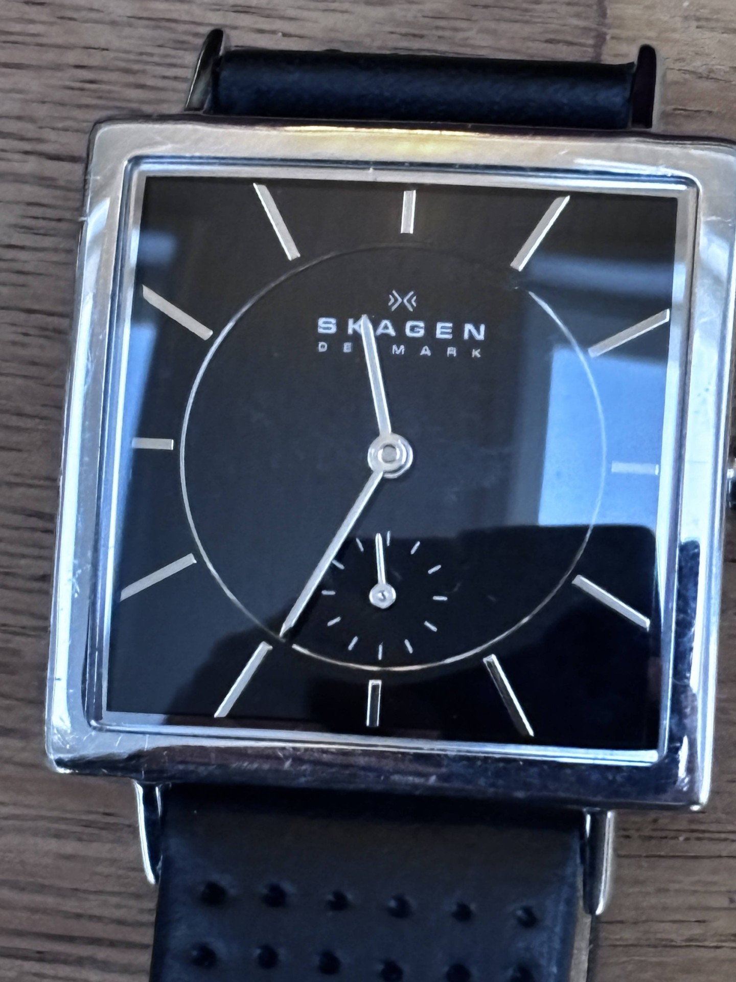 Skagen unisex Armbanduhr 475LSLB, quadratisch, Lederband, neuwertig, B-3 cm