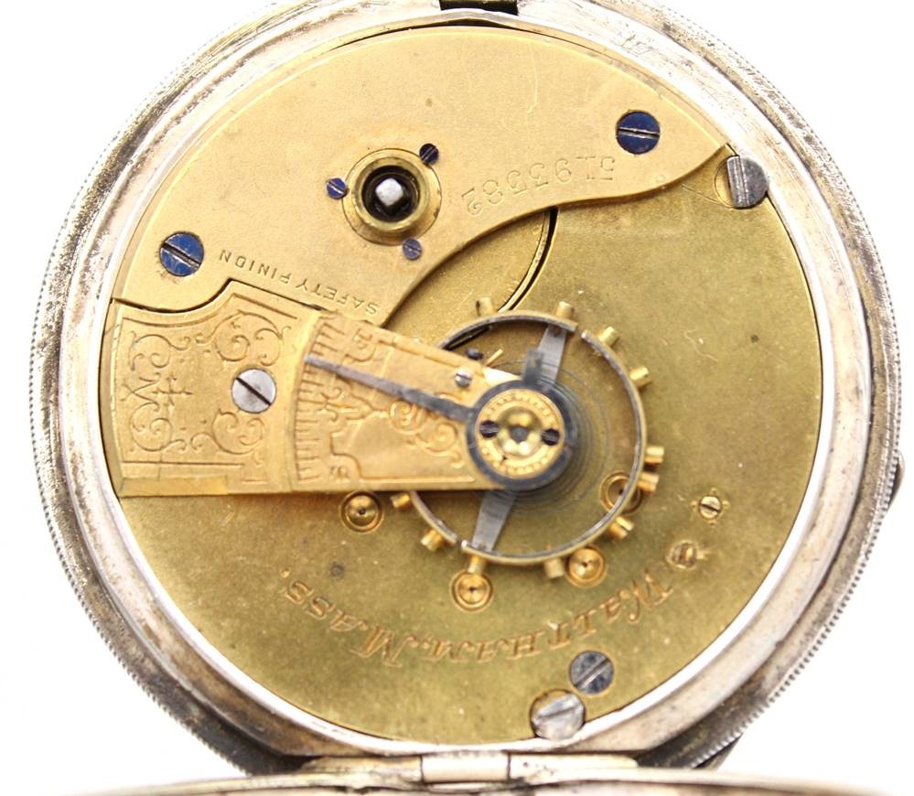 Spindeltaschenuhr, Waltham, Silbergehäuse, Werk läuft, Ziffernblatt altrissig, D-5,3cm [1]