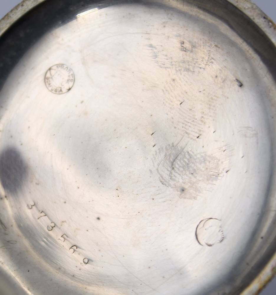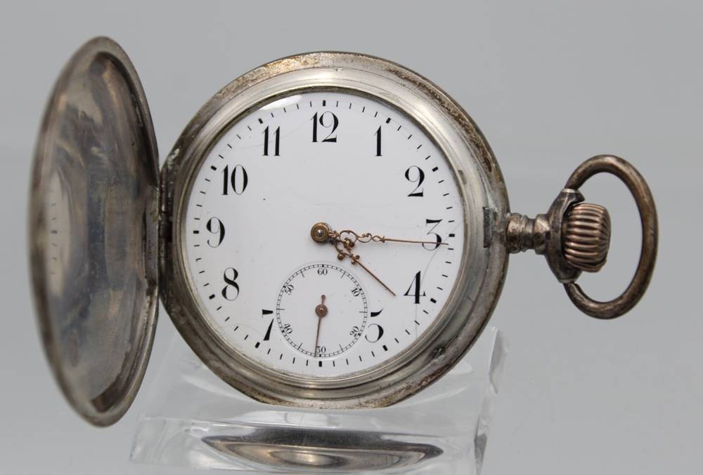 Sprungdeckel-Taschenuhr, IWC, Kronenaufzug, Silbergehäuse, Kronenaufzug, Werk steht, D-5,1cm [1]