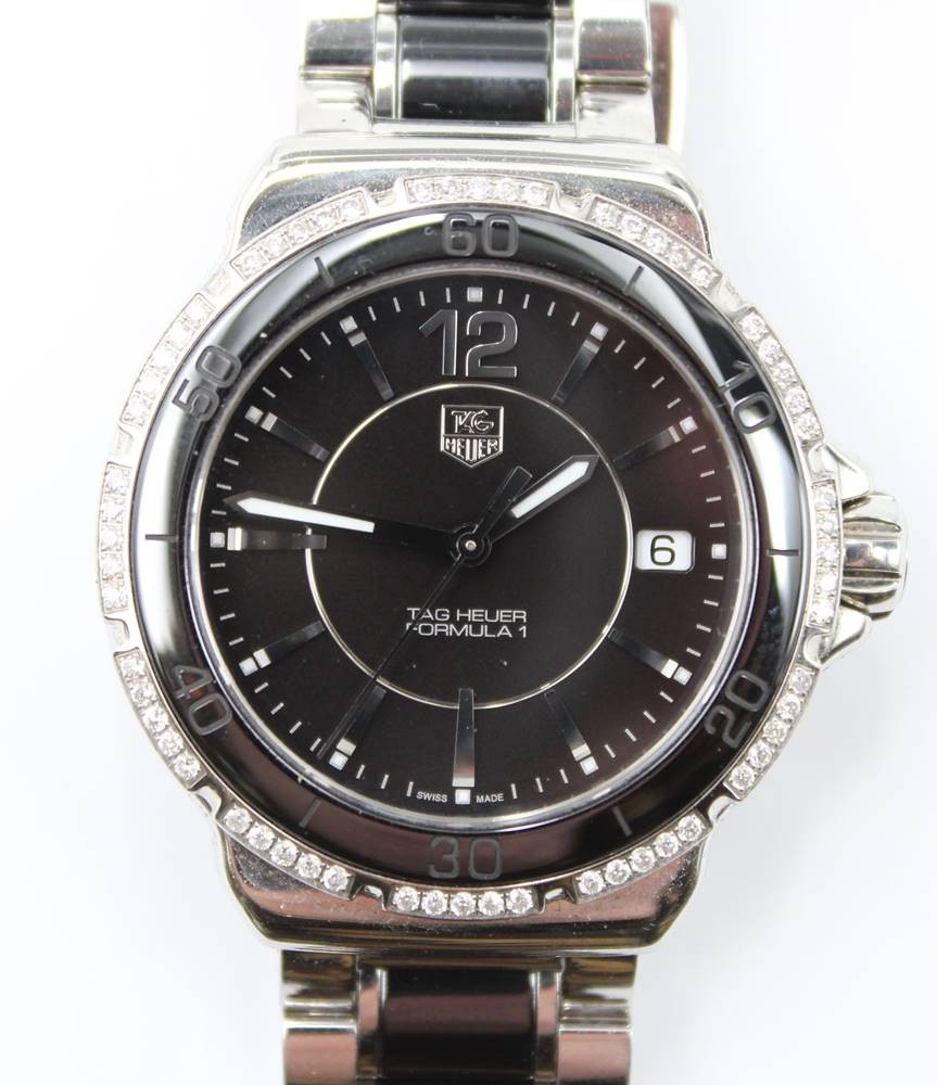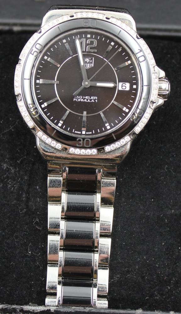 Tag Heuer DAU Formula 1 mit Brillantenkranz, gut erhalten, Werk läuft, Kasten und Papiere [1]