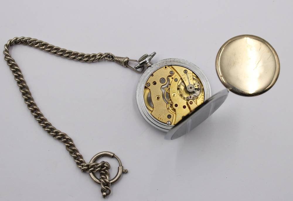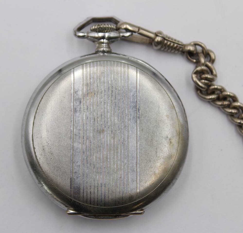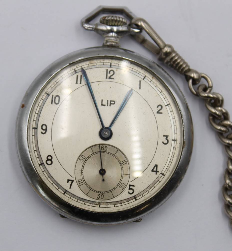 Taschenuhr an Kette, LIP, Werk läuft, Gebrauchsspuren, D-4,5cm [1]