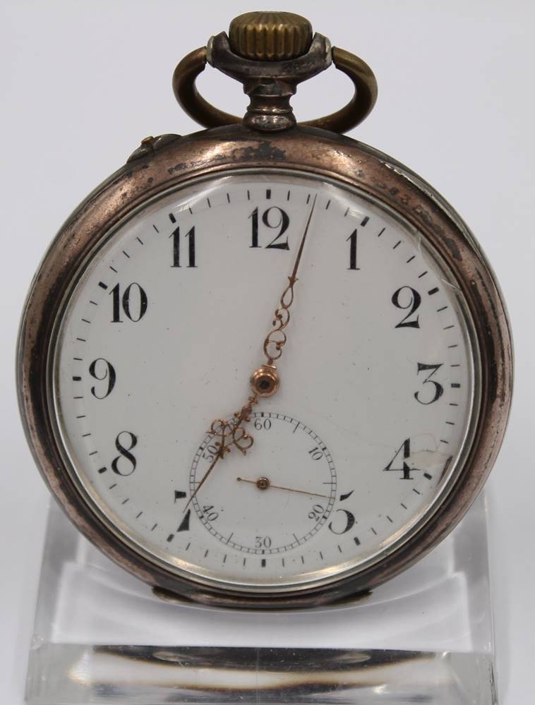 Taschenuhr um 1900, 800er Silbergehäuse, Kronenaufzug, Werk defekt (rostig), D-5cm [1]