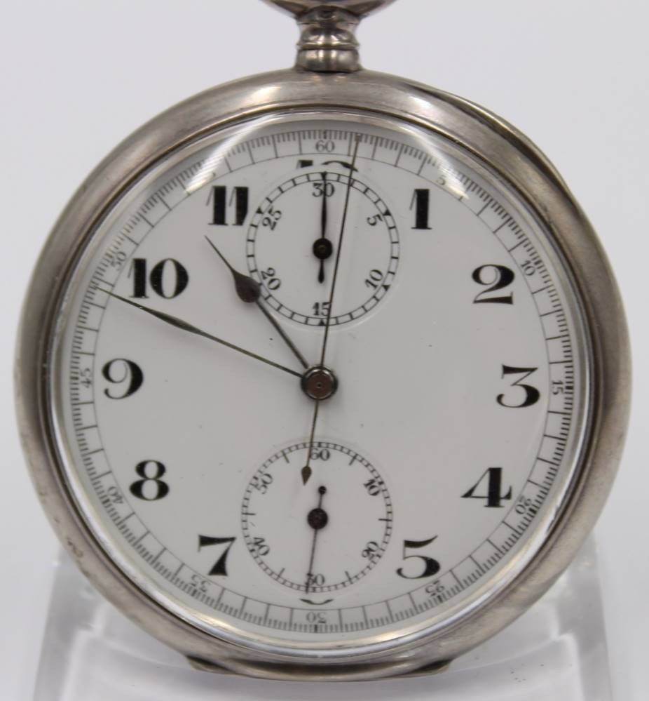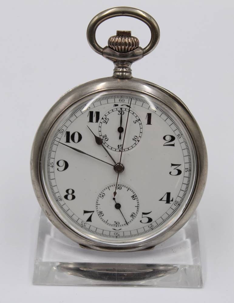 Taschenuhr um 1920, mit Stopfunktion, 800er Silbergehäuse, Kronenaufzug, Werk läuft, D-4,3cm [1]