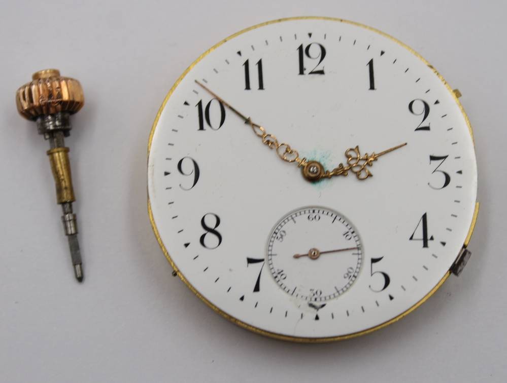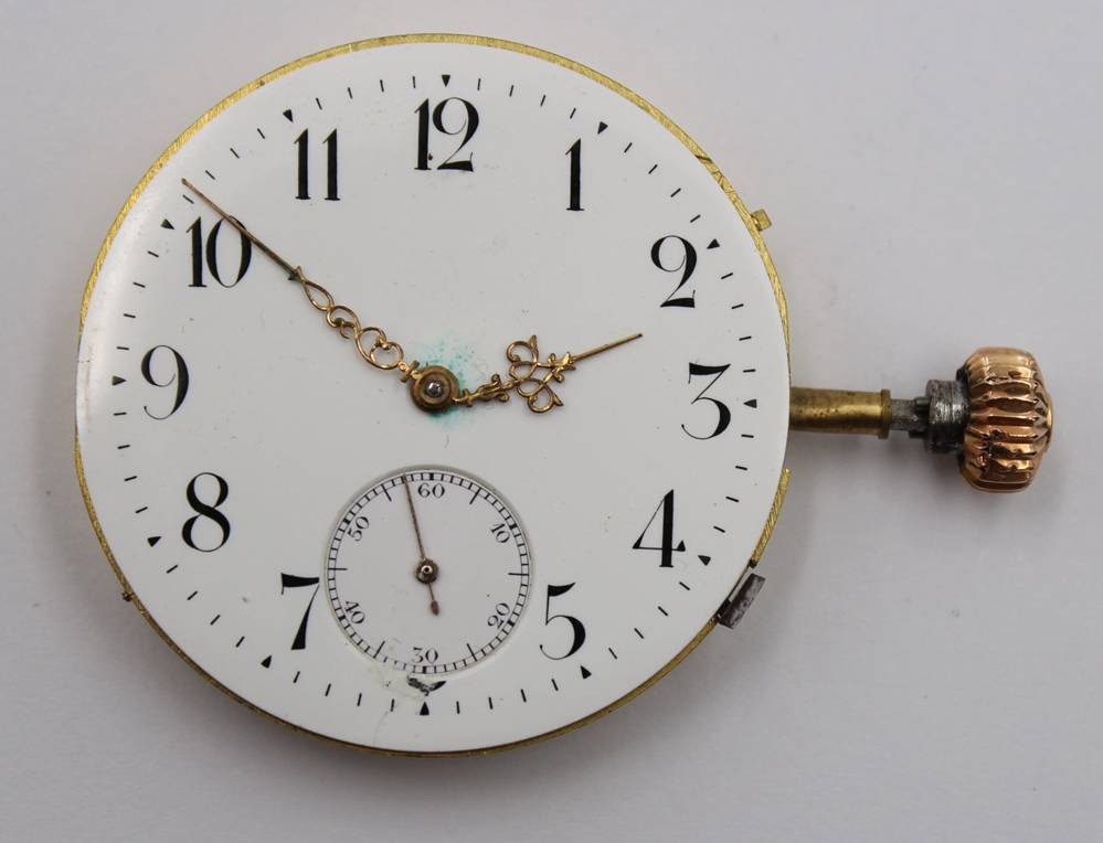 Taschenuhrwerk, älter, ungemarkt, Werk läuft, ca. D-4,5cm [1]