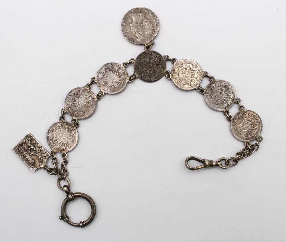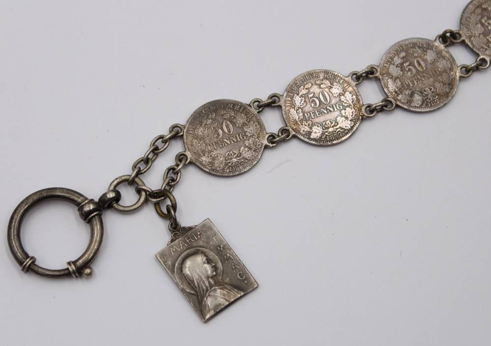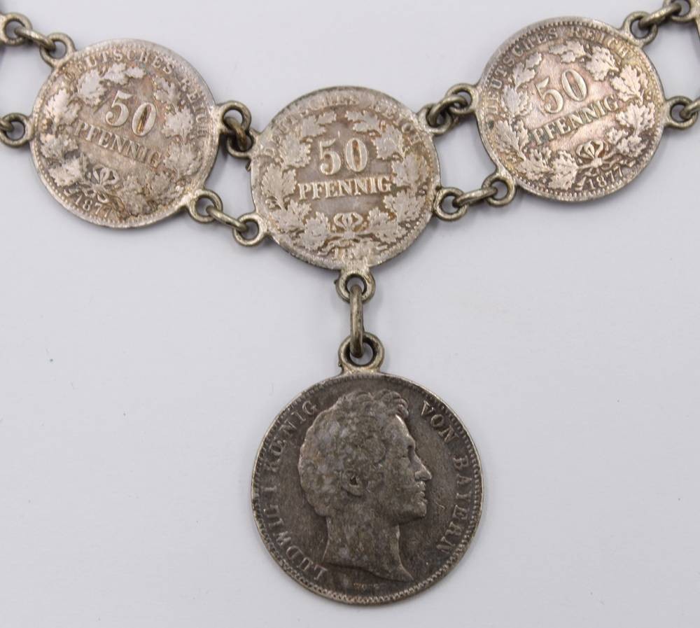 Uhrenkette gefertigt aus Münzen, 50 Pfennige von 1877 sowie 1/2 Gulden von 1844, ca. L-27cm [1]